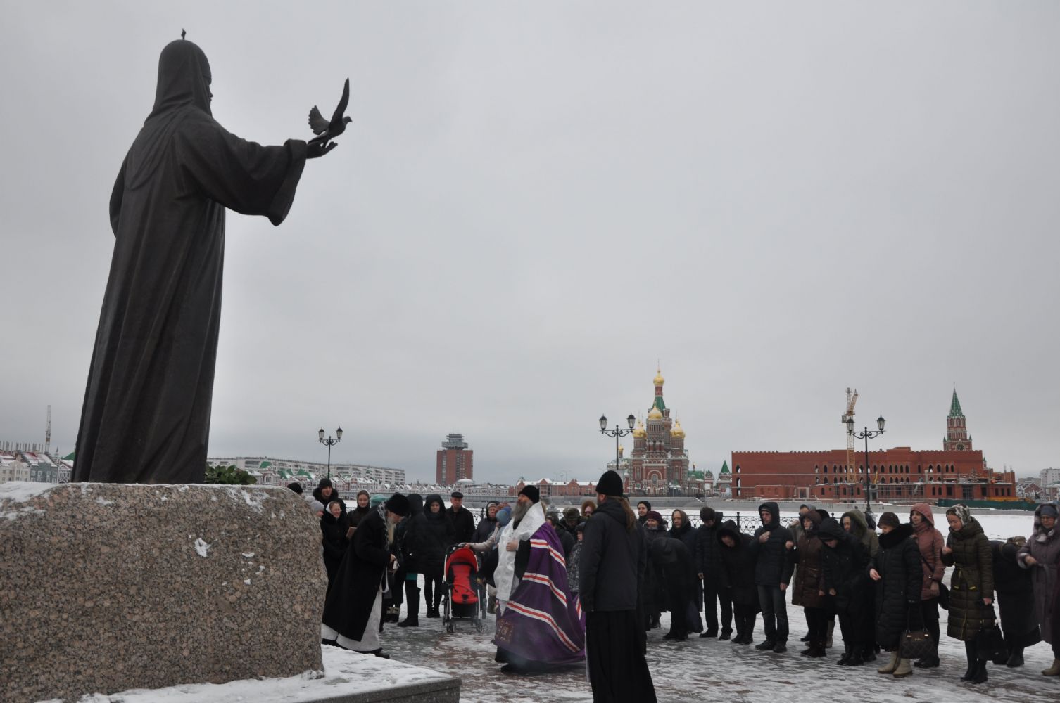 По окончании Литургии была совершена панихида по Патриарху Алексию. Затем на Патриаршей площади г. Йошкар-Олы Владыка совершил заупокойную литию перед памятником Патриарху Алексию II.
