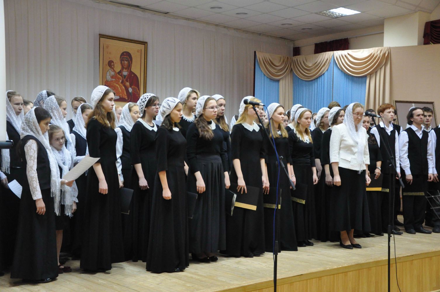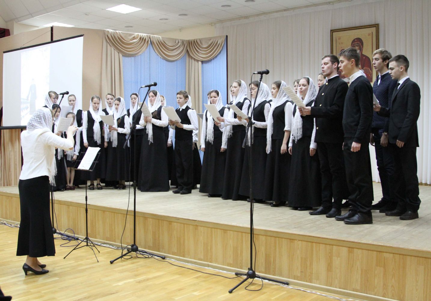 Музыкальную часть вечера начал хор Троицкого храма под управлением регента Анны Ярошевич, исполнив «Радуйтеся, праведнии…», музыка Римского-Корсакова, «Трисвятое», напев Пюхтицкого монастыря, «Хвалите имя Господне…» и «Малое славословие», музыка Лапаева.