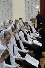 Детско-юношеский хор «Благовест» под управлением регента Татьяны Черновой исполнил «Воскликните Господеви вся земля», музыка Гречанинова и «Кто ны разлучит?» музыка протоиерея Иоанна Соломина.