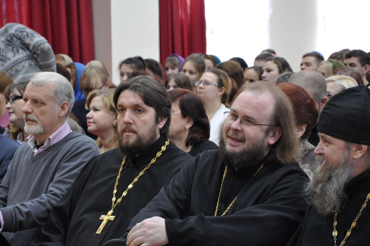 Так же выступили приглашенные гости: священник Сергий Гамаюнов, протоиерей храма св. вмц. Екатерины при Вятской православной гимназии, кандидат исторических наук «История России как священная история», преподаватель Православных образовательных курсов во имя святого священномученика Адриана Троицкого, стажер Московской Духовной Академии Василий Крикунов «Церковь, государство и общество: задачи XXI века» и доцент кафедры философии Поволжского государственного технологического университета Анна Владимировна Артамонова - «Потенциал православных ценностей в воспитательной работе с молодежью».