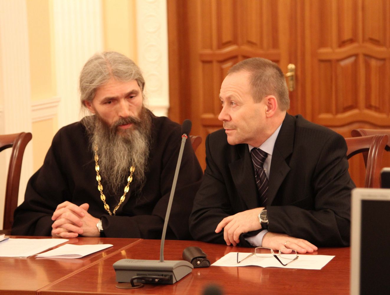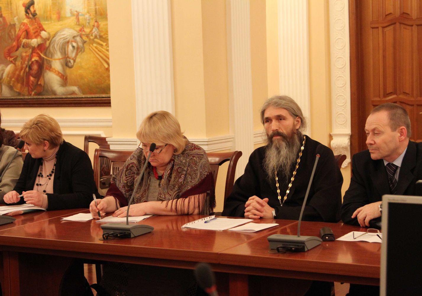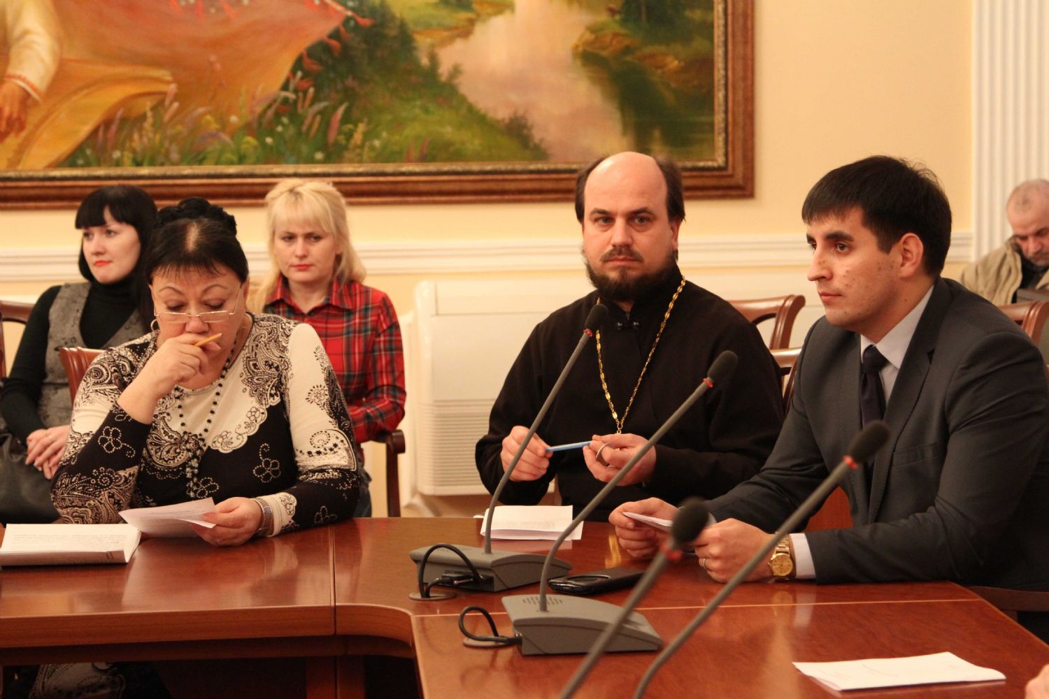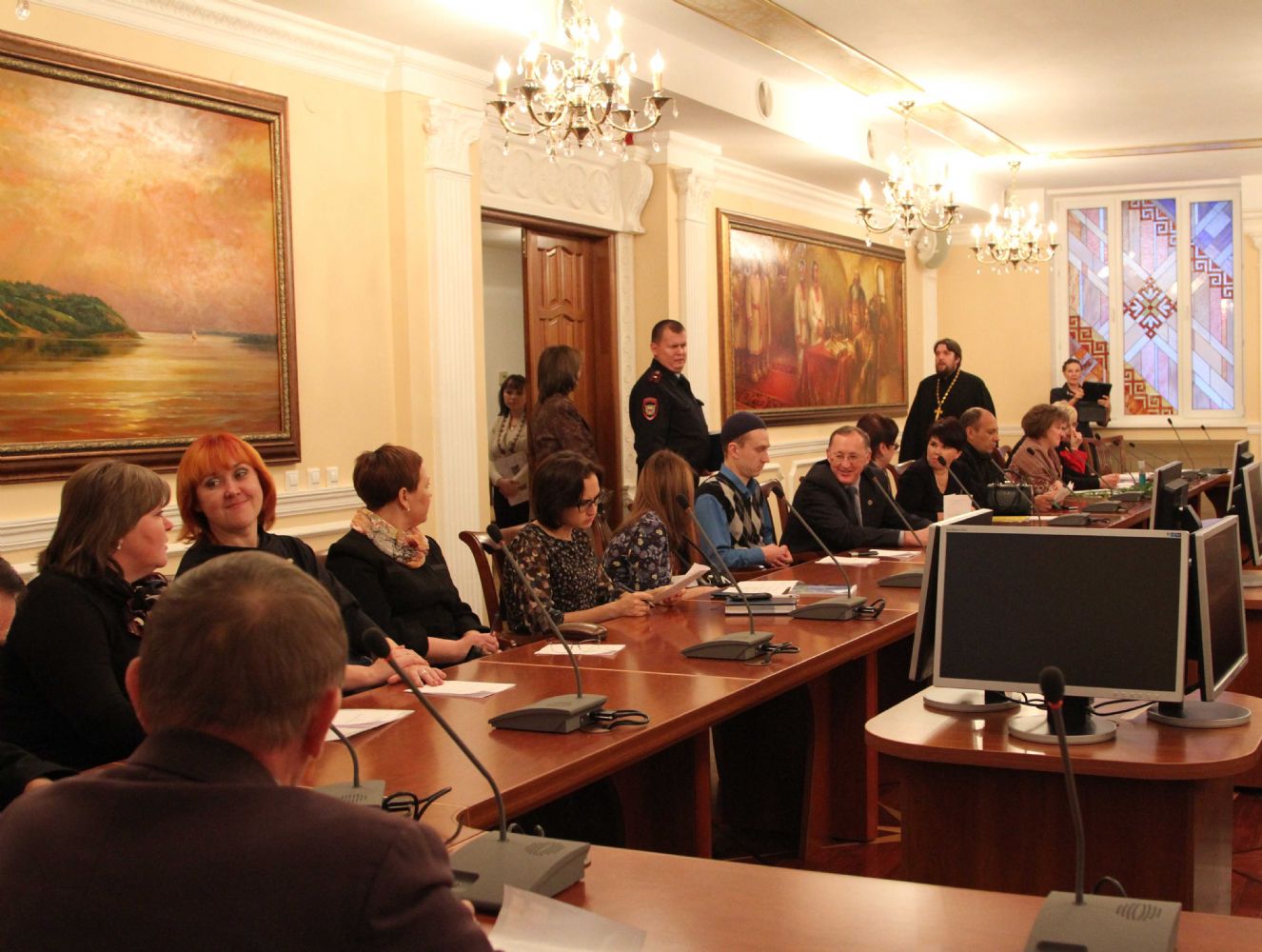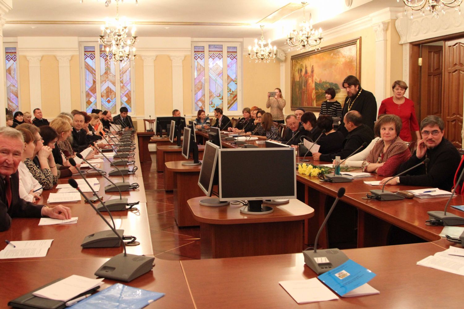 Открыл заседание заместитель Председателя Правительства РМЭ, министр культуры, печати и по делам национальностей М. З. Васютин. Он отметил, что подобная встреча, в формате круглого стола, проводится впервые. «Заявленная тема – это предмет обсуждения не одного века, не одного дня… Сегодня мы часто слышим слово «кризис», но чаще оно ассоциируется с экономикой. Но очень редко сейчас говорят о кризисе духовности, который гораздо опаснее и страшнее для существования любого государства», — подчеркнул Михаил Зиновьевич.