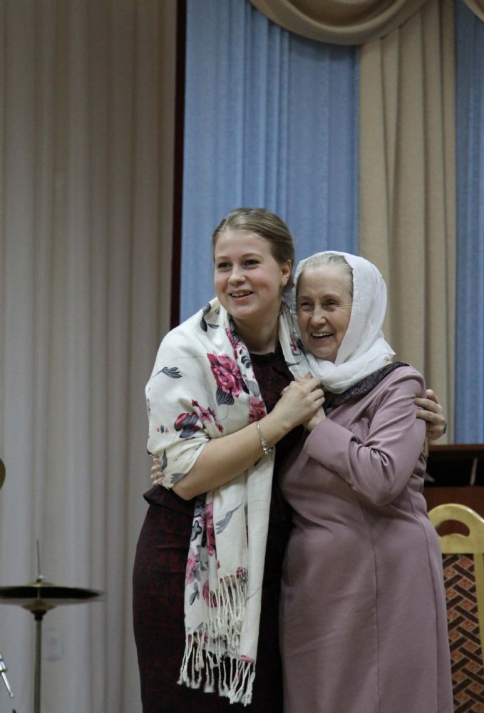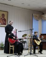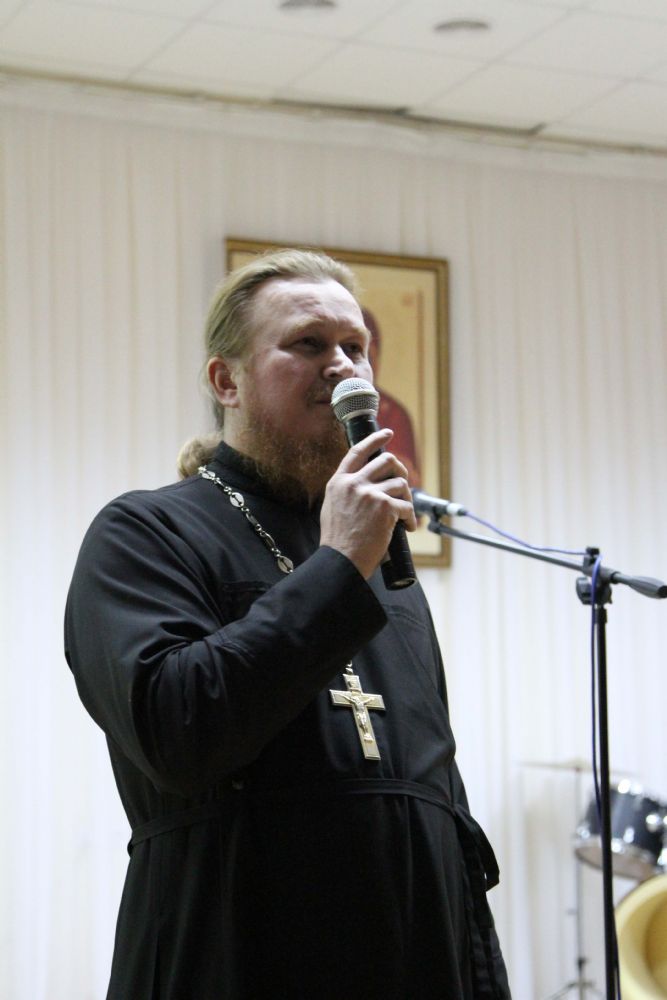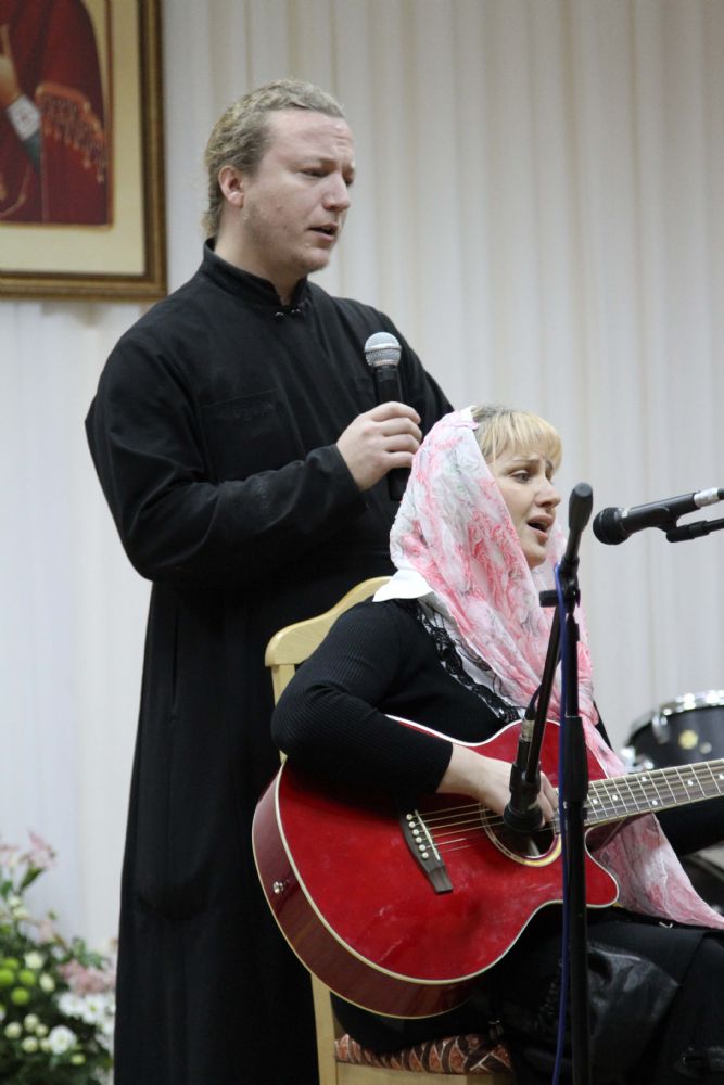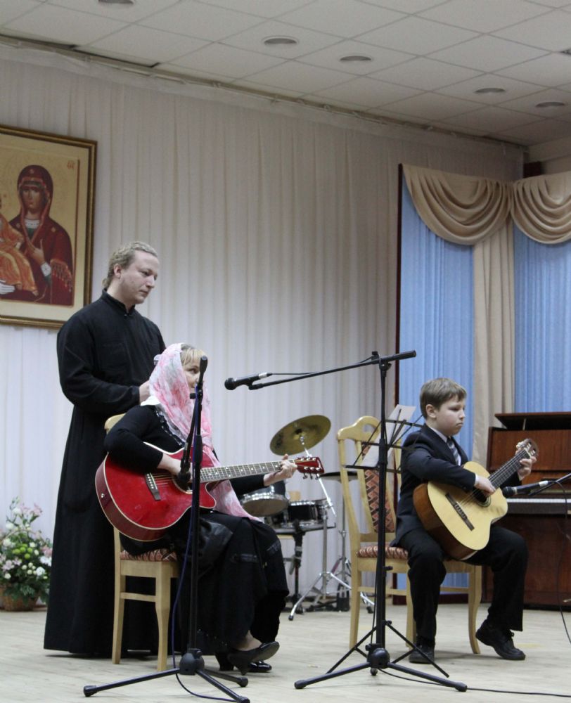 Продолжился концерт поздравлением наших мам. Поздравить их собралось множество замечательных людей и коллективов, прозвучали песни в исполнении детско-юношеского хора «Благовест», дуэта диакона Сергия Метелева и диакона Игоря Коваля, групп «Друзья» и «Деревня Тараканов» и других исполнителей. Дети из воскресных школ города, а также образцовый ансамбль «Ваталинка» порадовали всех песнями, стихотворениями и танцевальными номерами. Завершился вечер поздравлением настоятеля Архиерейского подворья, руководителя епархиального отдела социального служения и церковной благотворительности протоиерея Сергия Поглазова. Отец Сергий поздравил всех матерей с праздником и преподнес подарки многодетным матерям.