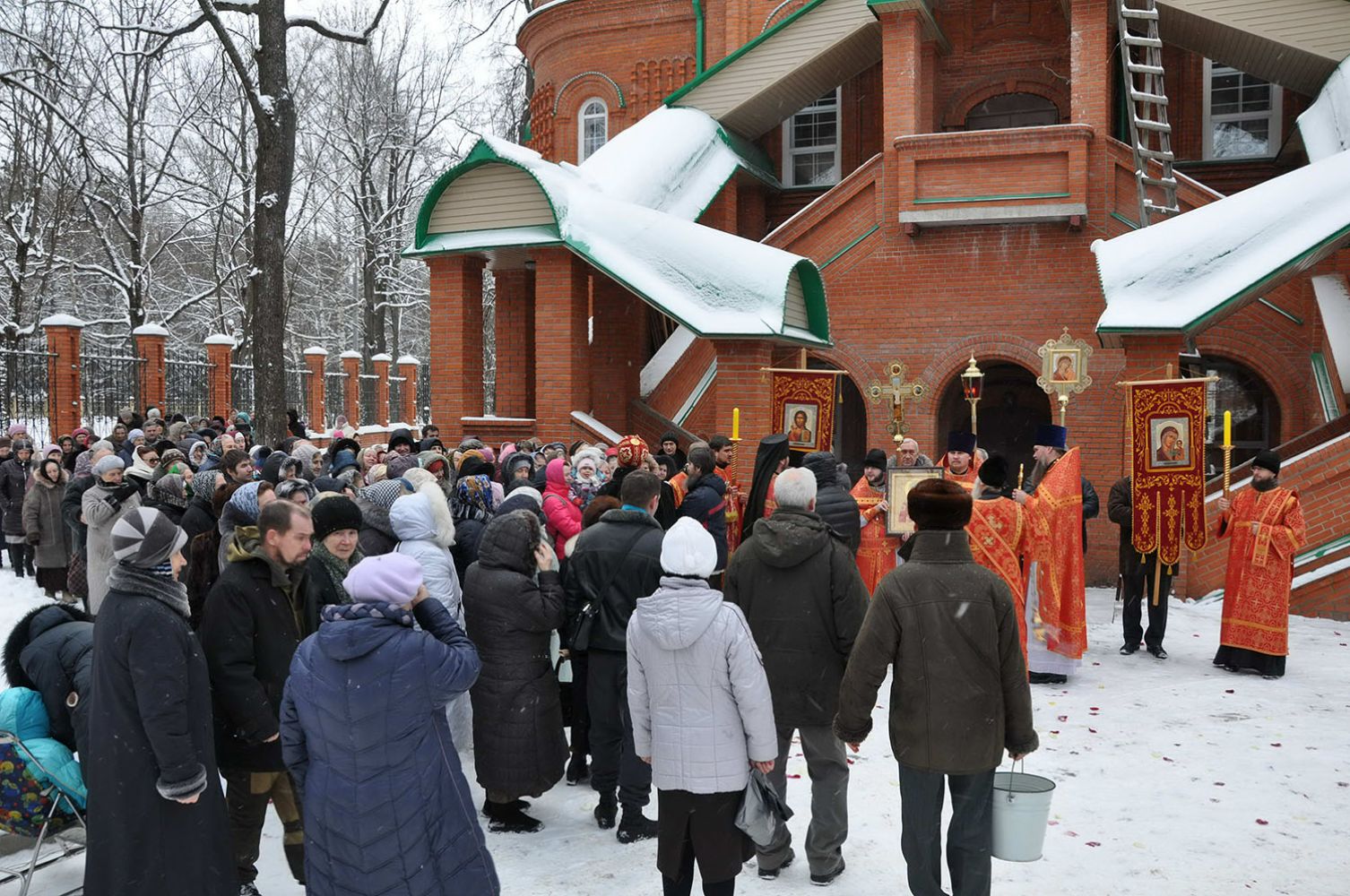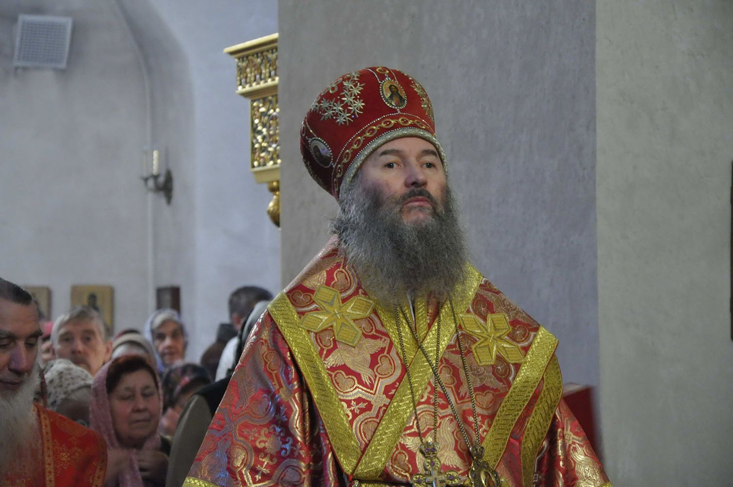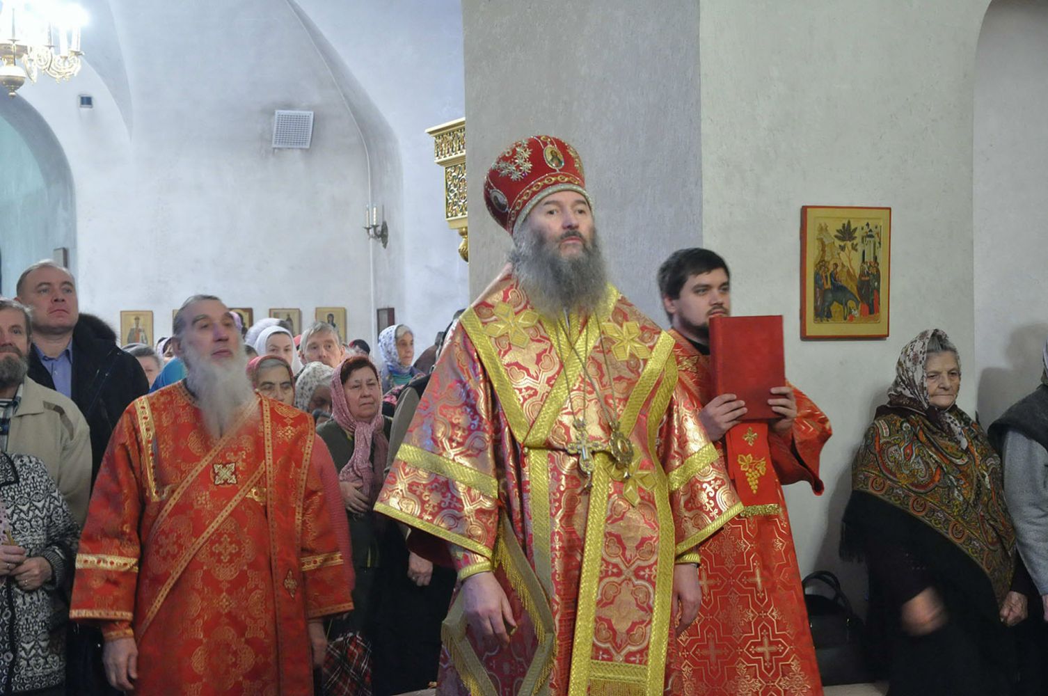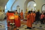 Полный храм верующих молился со своим Архипастырем, многие причастились Святых Тайн Господних. После отпуста был отслужен праздничный молебен и совершен крестный ход вокруг храма.