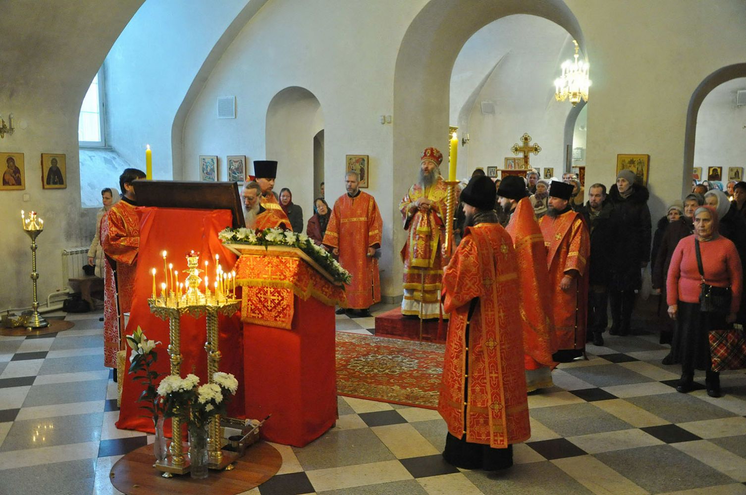 Накануне и в сам день празднования архиепископ Йошкар-Олинский и Марийский Иоанн Возглавил богослужение в нижнем приделе храма Серафима Саровского, освященного в честь великомученицы Варвары.