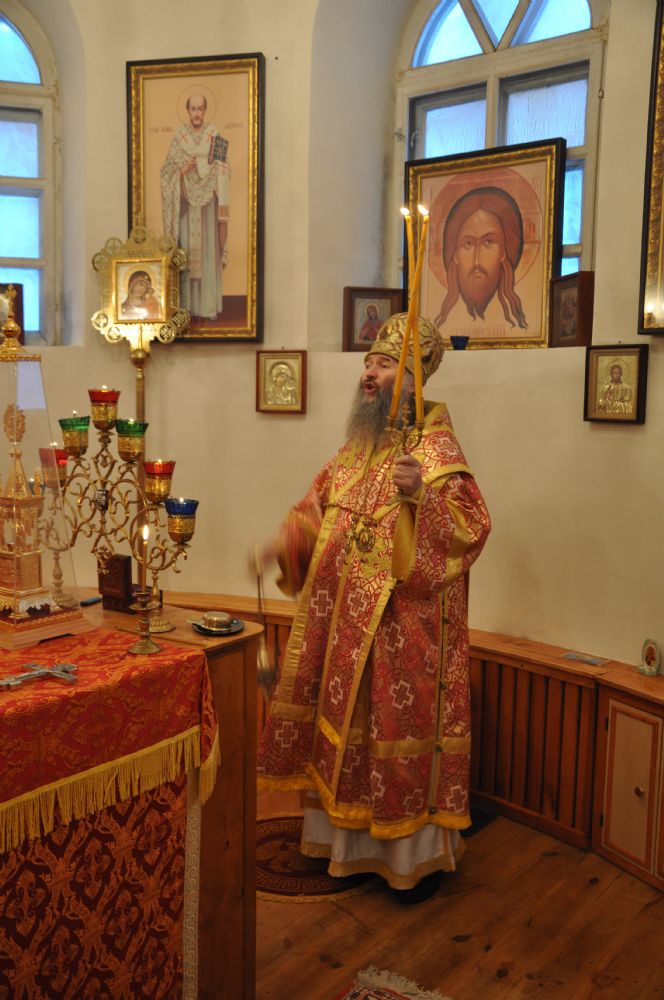 Владыке сослужил настоятель храма митрофорный протоиерей Сергий Филонов. По окончании литургии был совершен крестный ход вокруг храма.