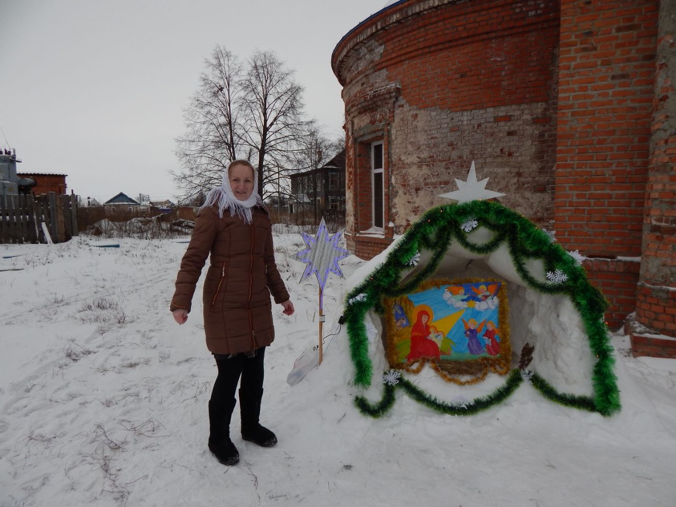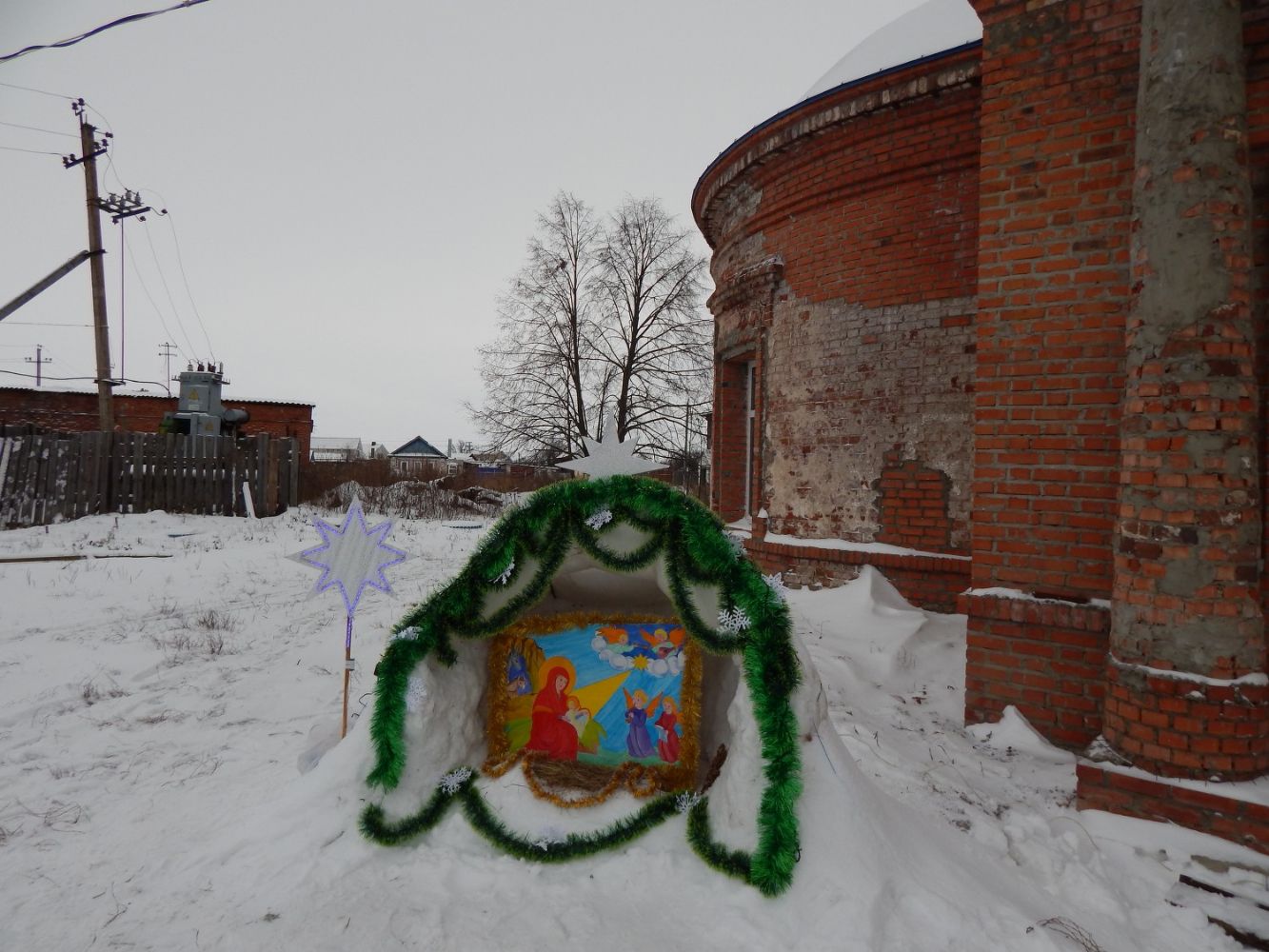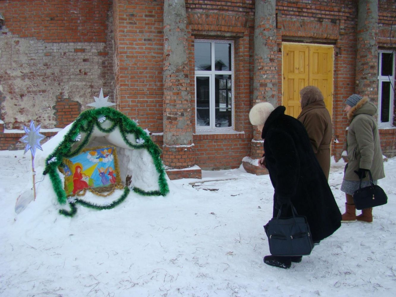 У входа в храм был сконструирован вертеп символизирующий ясли со Спасителем. В храме была установлена небольшая зеленая сосенка. Прихожане с радостью поздравляли друг друга с праздником Рождества Христова и желали здоровья и радости. После молебна отец Алексий поздравил всех с праздником, пожелал всем дальнейших успехов в восстановлении храма, здоровья и смирения.