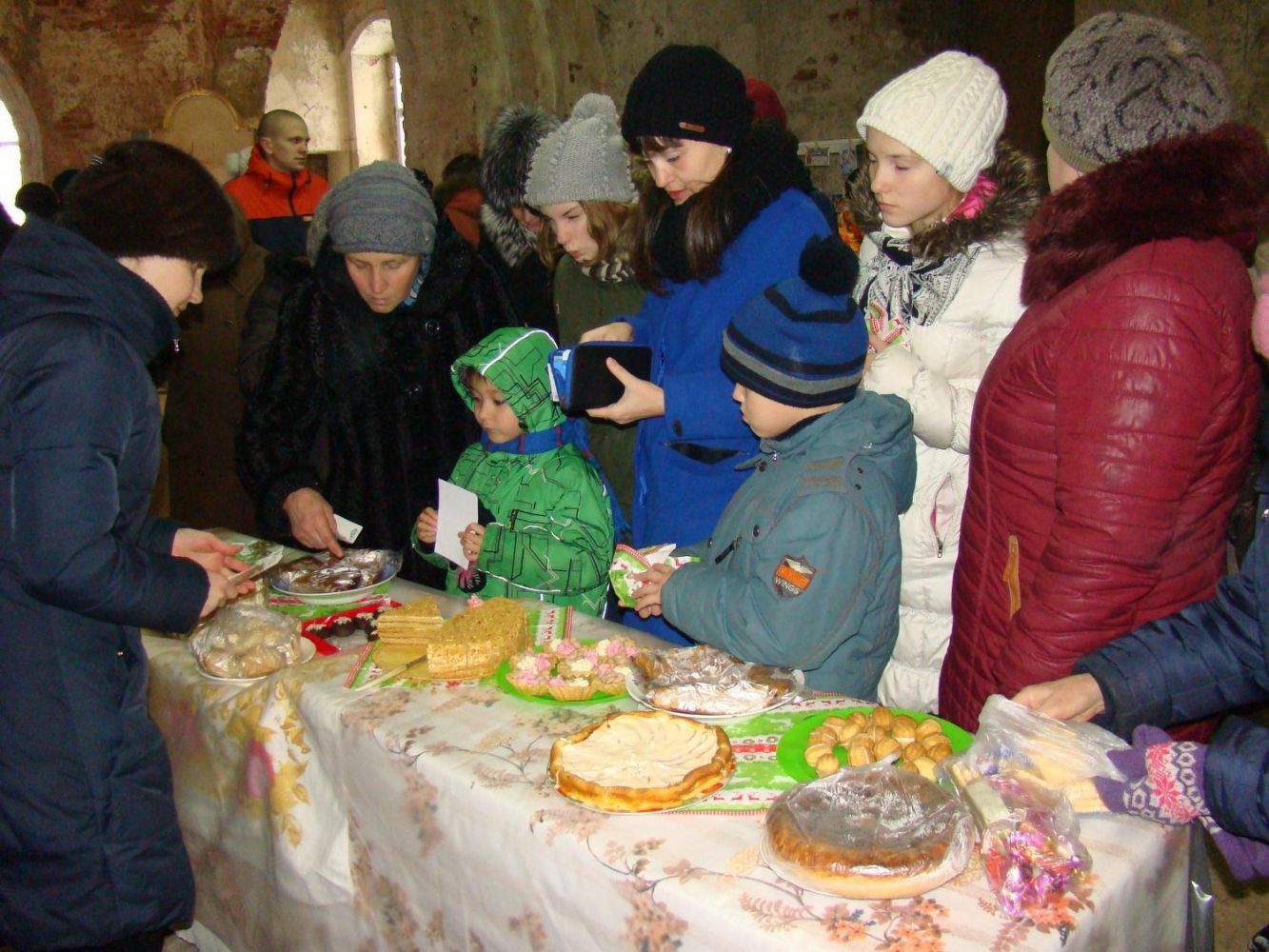 По окончании богослужения всех пригласили принять участие в благотворительной ярмарке и праздничном чаепитии. Вырученные на ярмарке средства в дальнейшем будут использованы на восстановление храма.