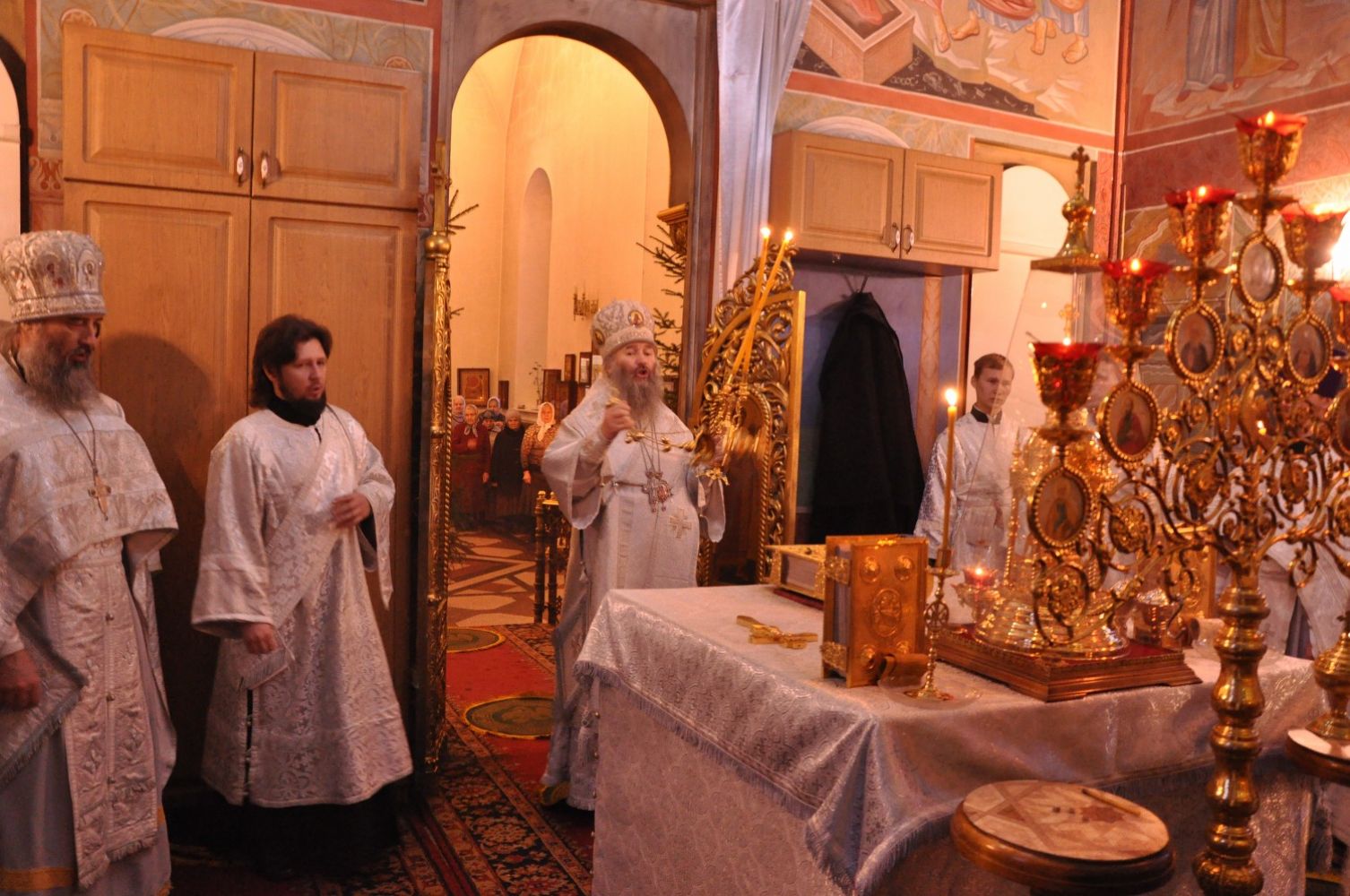 13 января, в день Отдания праздника Рождества Христова, Его Высокопреосвященство возглавил Божественную литургию в Успенском храме г. Йошкар-Олы. Владыке сослужили: настоятель храма митрофорный протоиерей Сергий Филонов и клирики храма.
