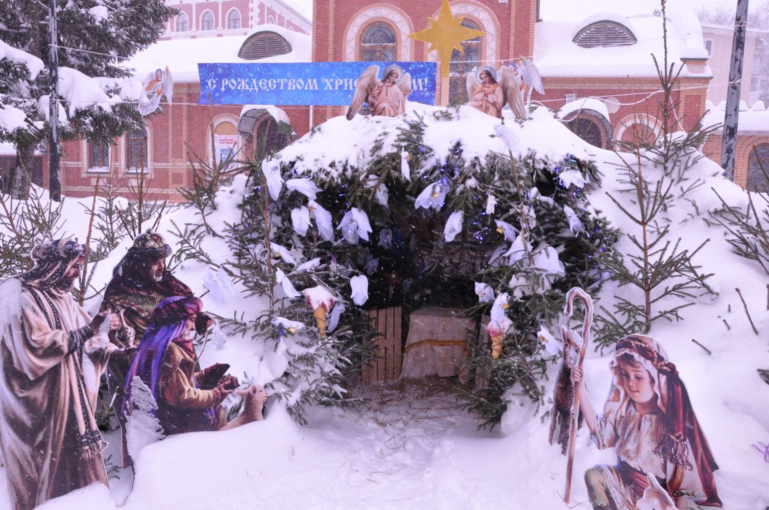 Богослужебные песнопения прозвучали в исполнении хора Троицкого храма под управлением регента Анны Ярошевич. По окончании Литургии было совершено славление празднику Рождества Христова.