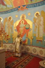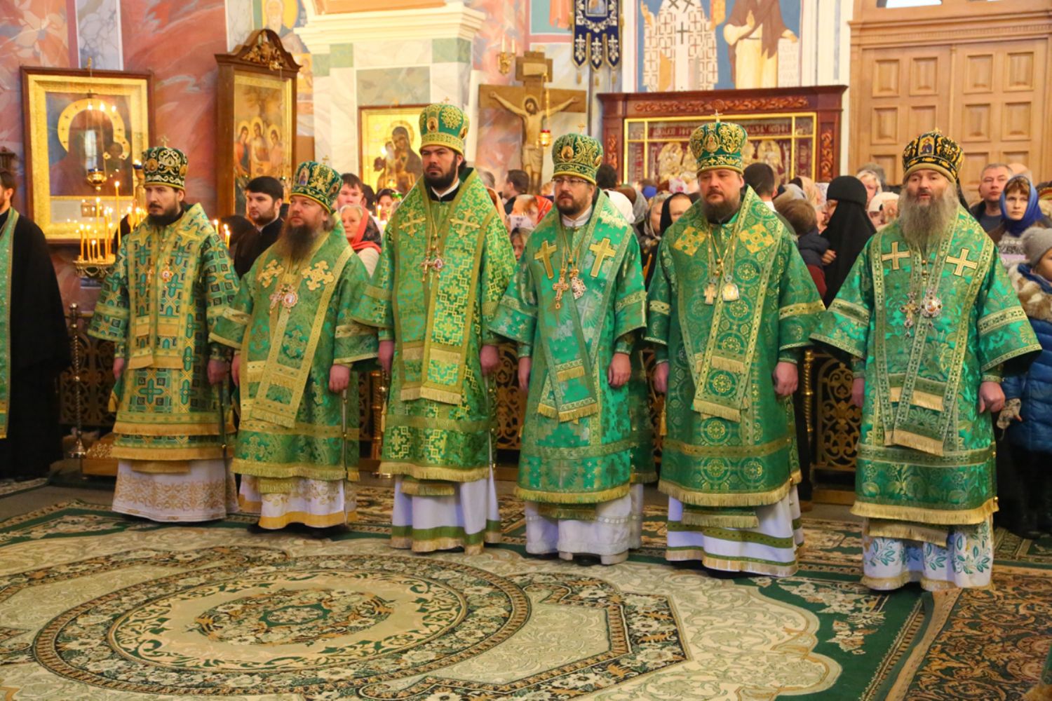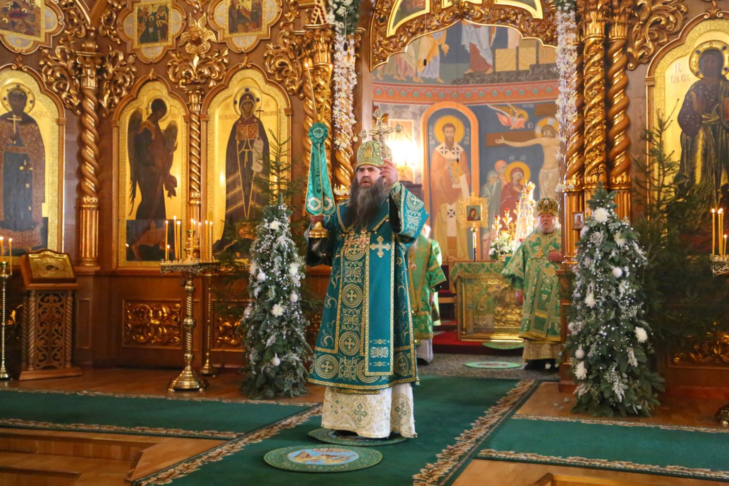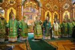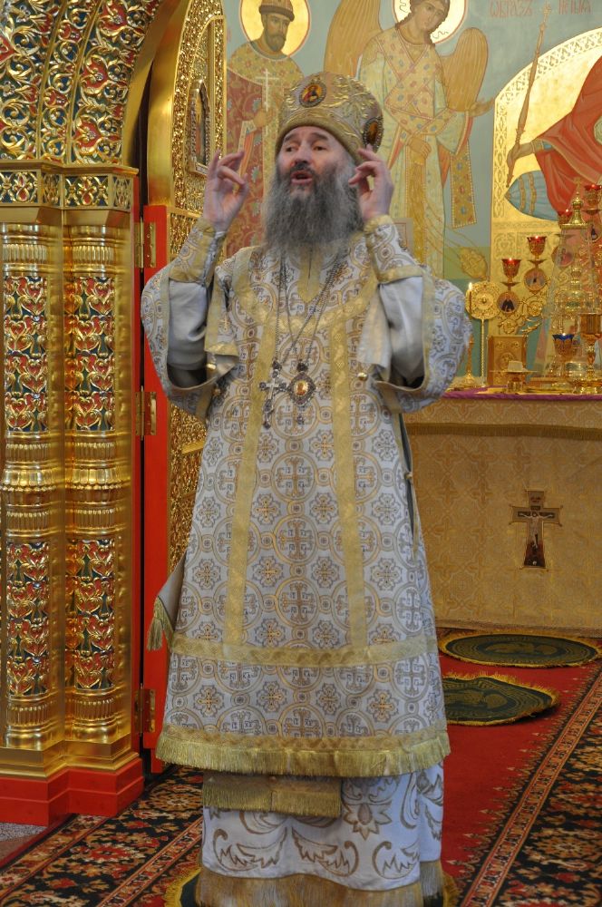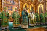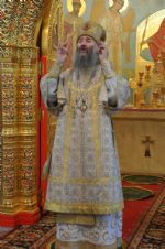 Владыке сослужили: секретарь Епархиального управления иеромонах Серафим (Пасанаев), настоятель храма протоиерей Александр Бачурин и клирики храма: иереи Константин Домрачев и Виктор Умрихин.