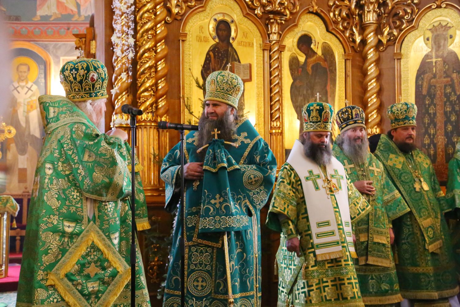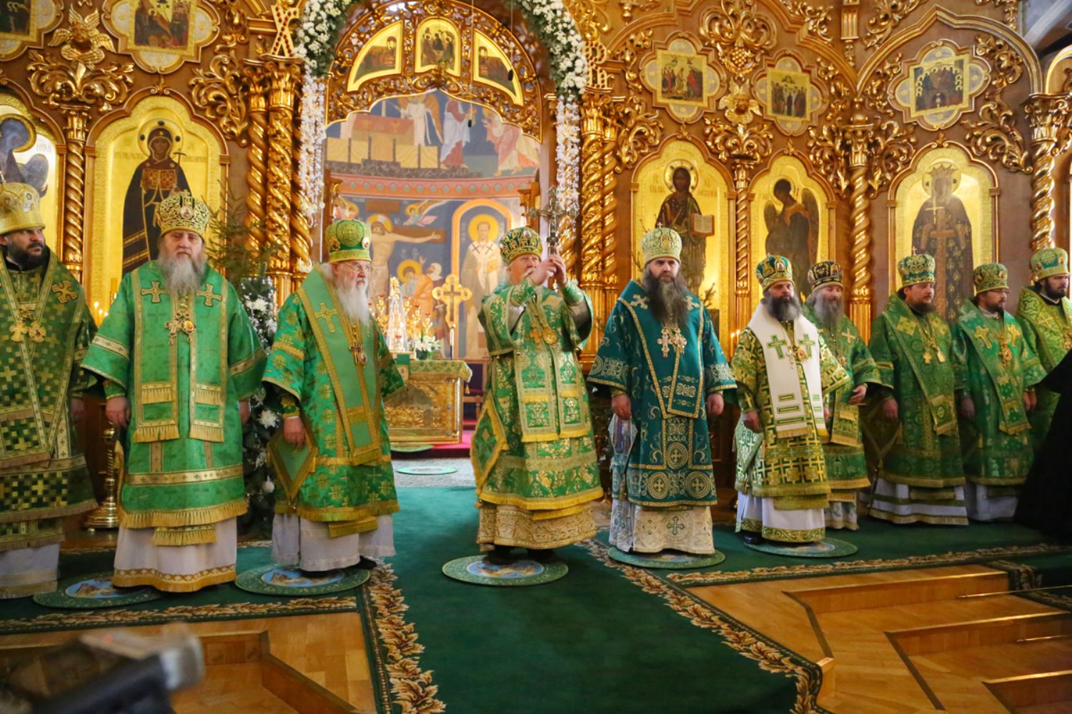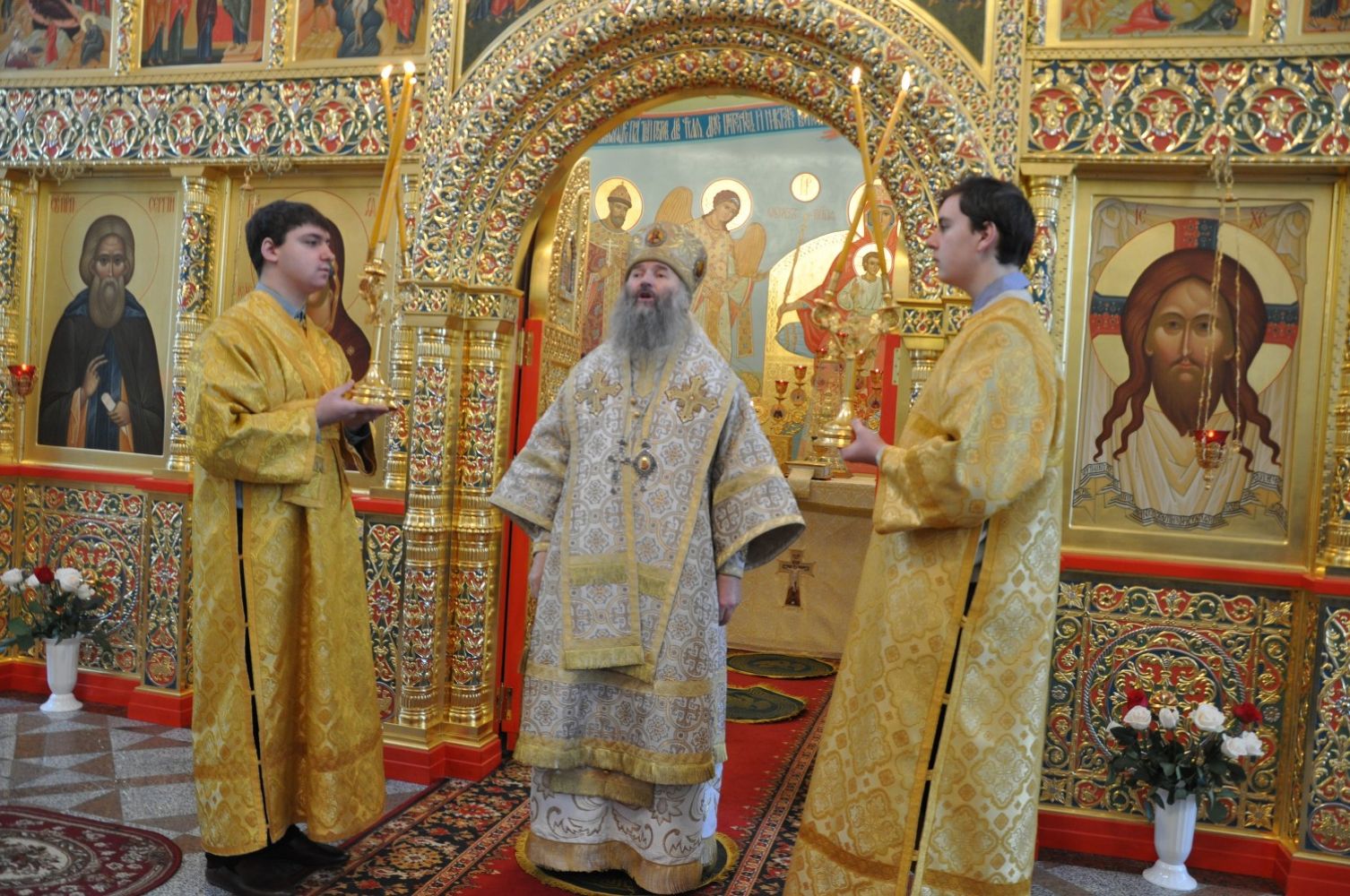 Владыке сослужили: секретарь Епархиального управления иеромонах Серафим (Пасанаев), настоятель храма протоиерей Александр Бачурин и клирики храма: иереи Константин Домрачев и Виктор Умрихин.
