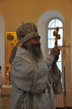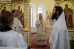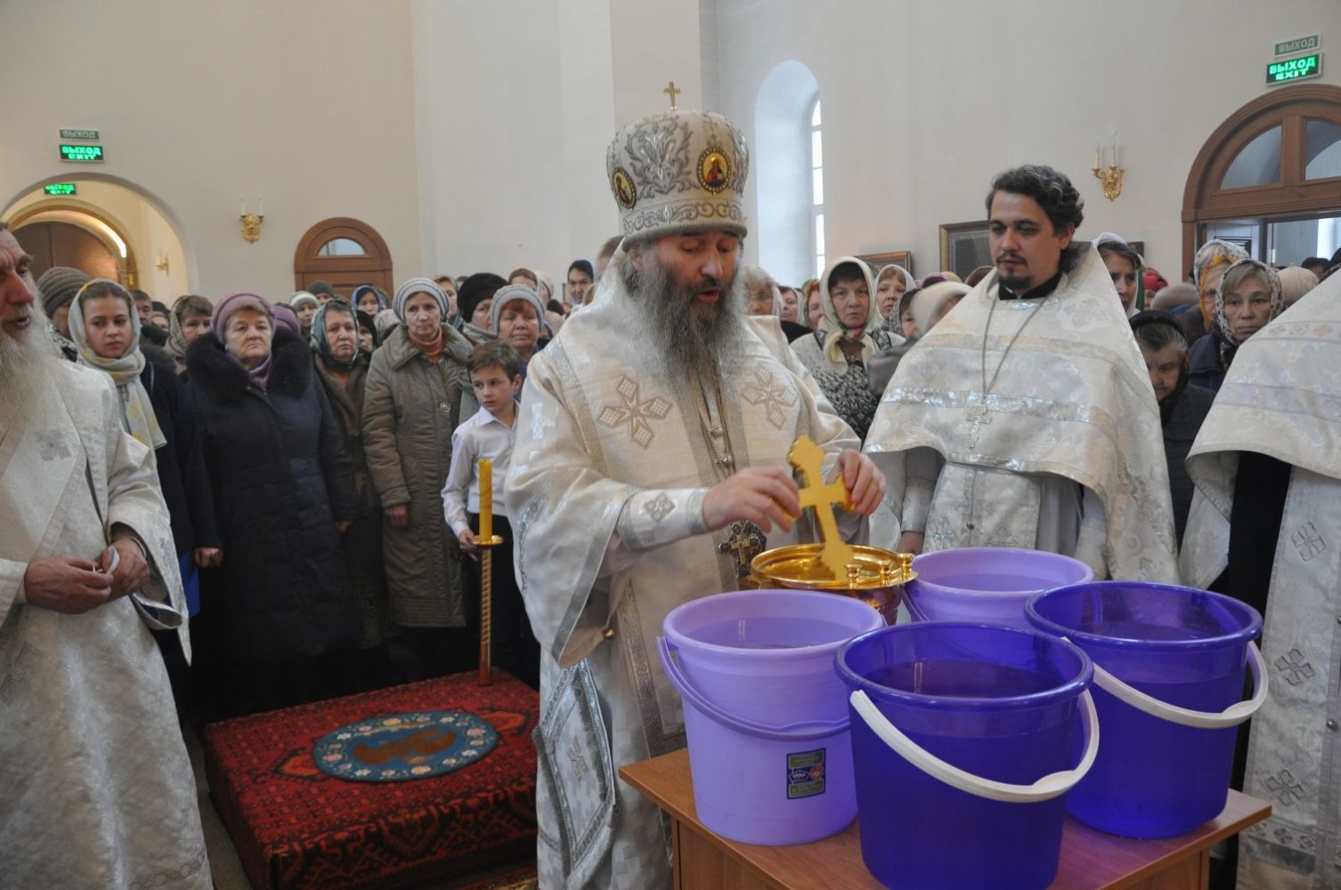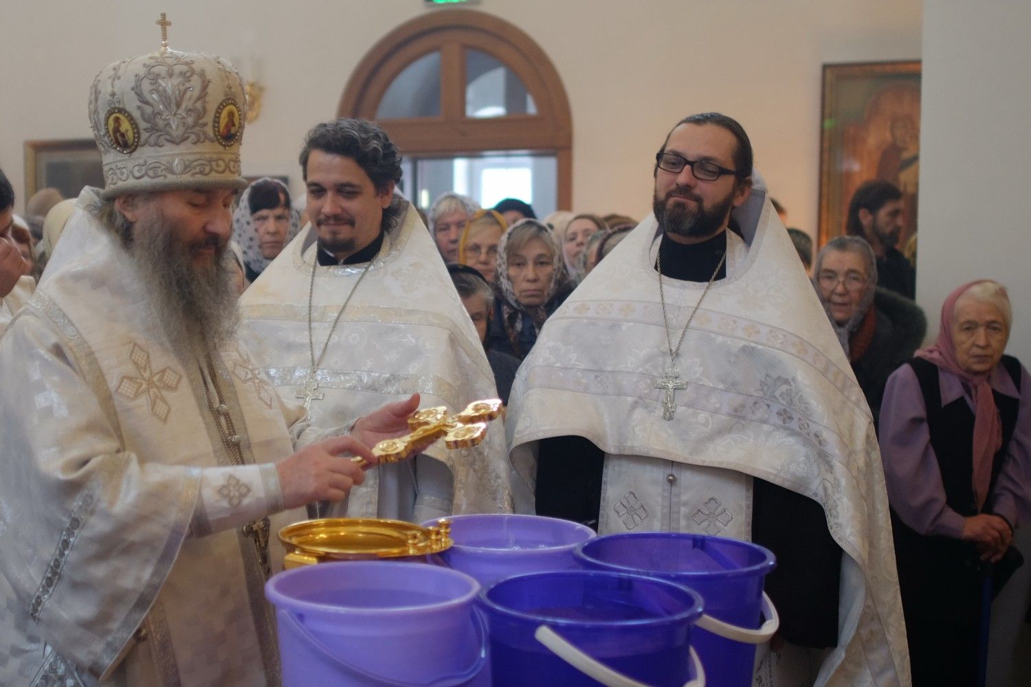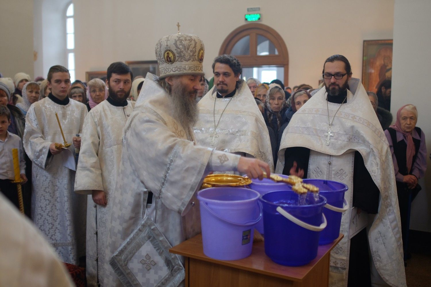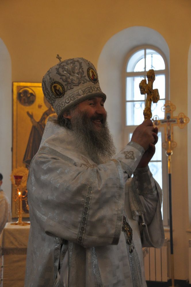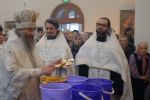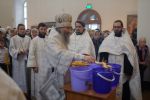 Владыке сослужили: секретарь Епархиального управления иеромонах Серафим (Пасанаев) и настоятель храма иерей Александр Лоскутов при стечении многочисленных прихожан. По окончании Литургии Владыка совершил чин великого освящения воды. В заключение было совершено славление празднику Крещения Господня.