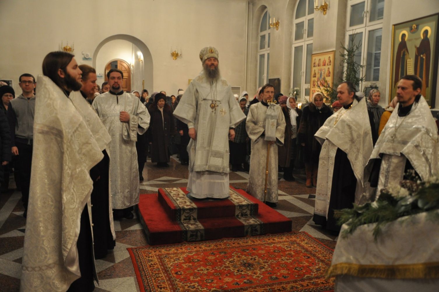 Всенощное бдение и Божественную литургию в праздник Крещения Господня Его Высокопреосвященство архиепископ Йошкар-Олинский и Марийский Иоанн возглавил в храме в честь Рождества Христова г. Йошкар-Олы.