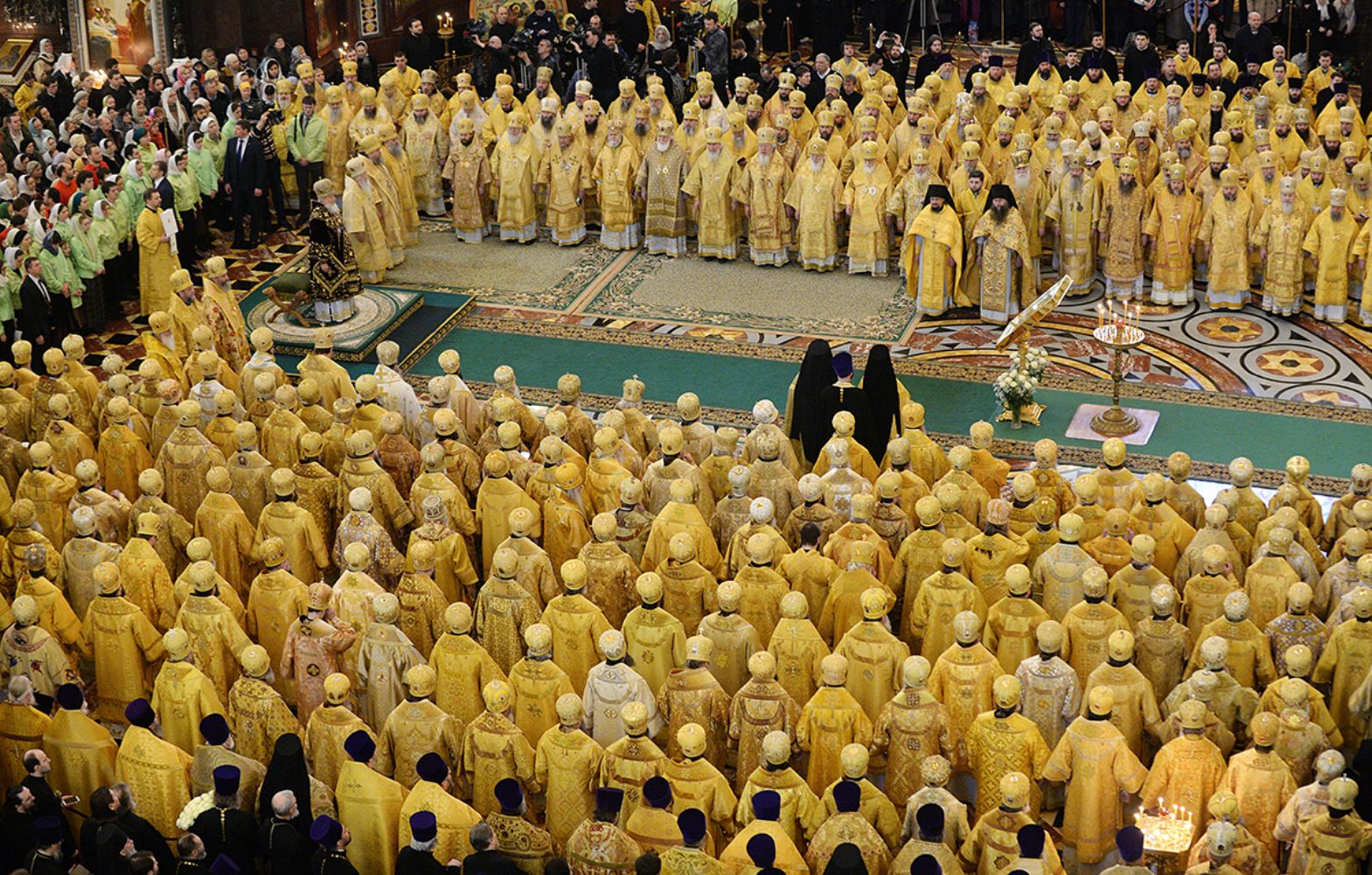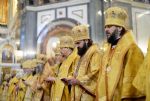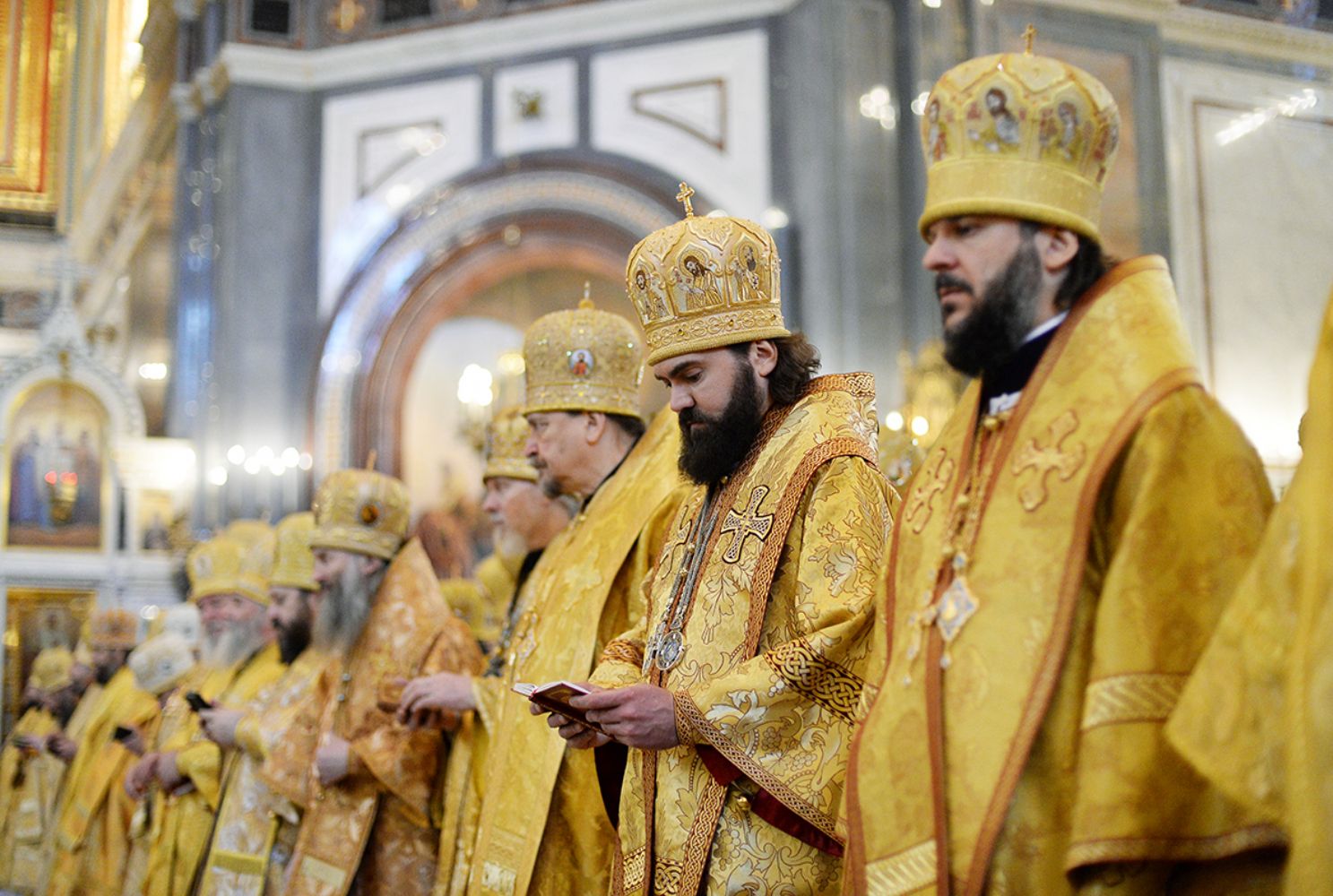 Предстоятелю Русской Православной Церкви сослужили иерархи, прибывшие на Архиерейский Собор Русской Православной Церкви, руководители синодальных и общецерковных учреждений в священном сане, представители Поместных Православных Церквей при Патриархе Московском и всея Руси, наместники ставропигиальных монастырей, духовенство г. Москвы.