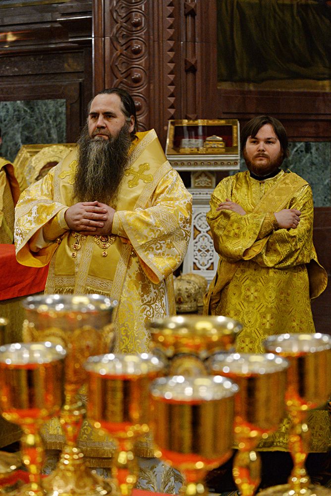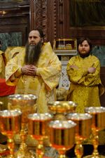 За Литургией пели два хора: Храма Христа Спасителя (регент — И.Б. Толкачев) и Сретенского ставропигиального монастыря (регент — Н.С. Жила).