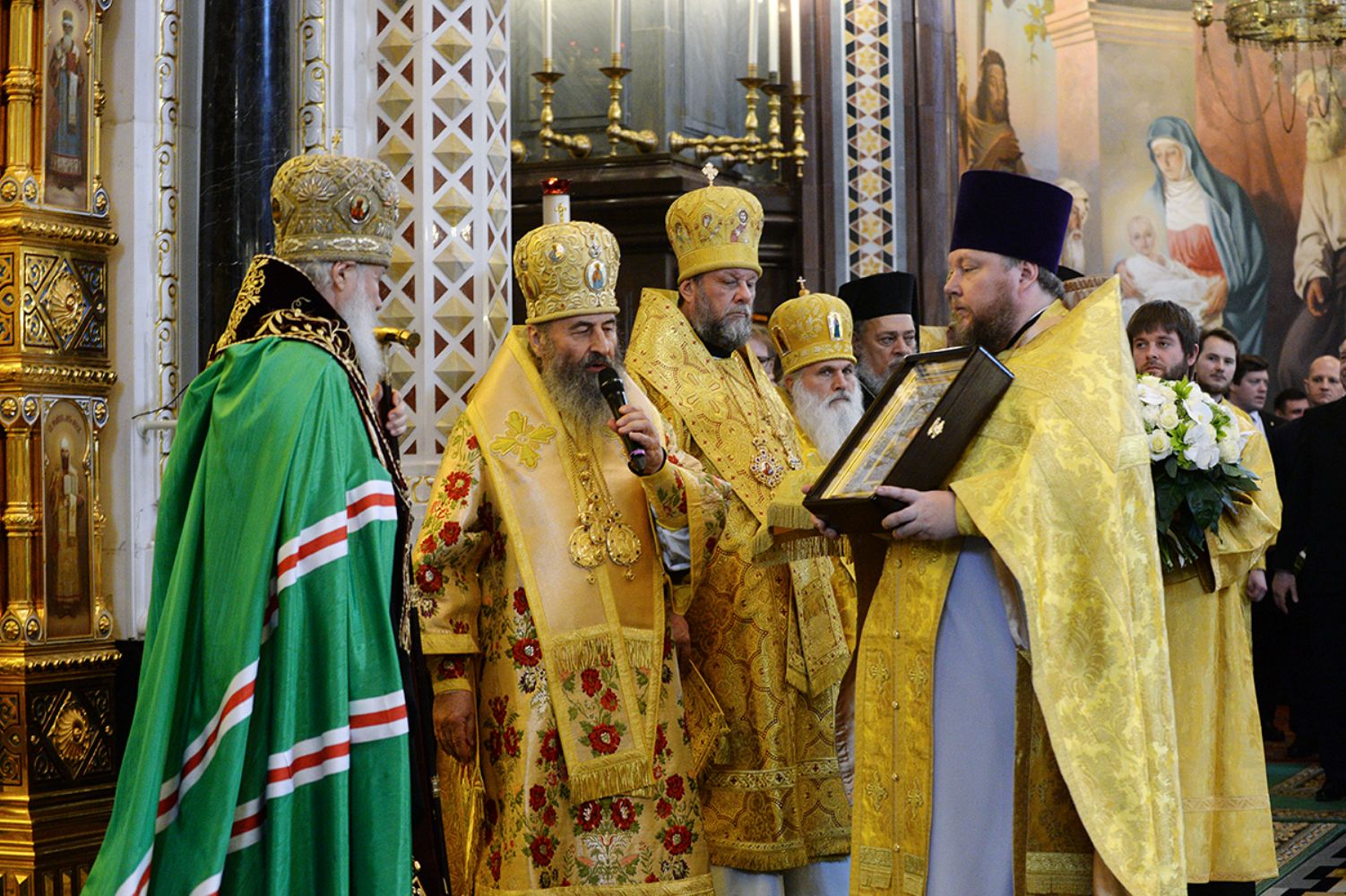 По окончании Литургии был совершен благодарственный молебен. Предстоятель Русской Православной Церкви обратился к собравшимся с Первосвятительским словом.