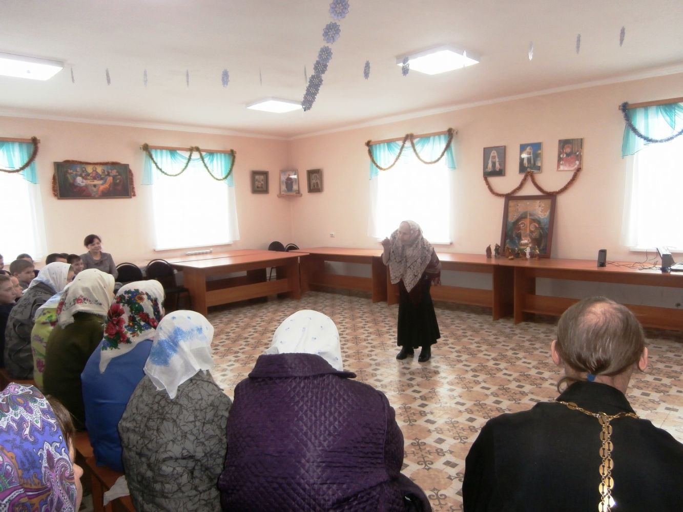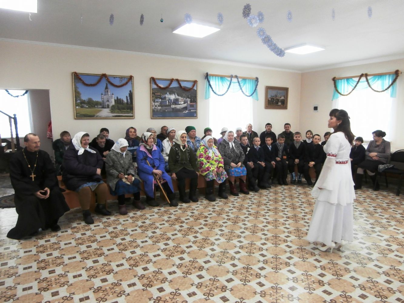 Так, сёстры милосердия исполнили на марийском языке церковные молитвы и православные песнопения. С поучительными притчами выступил брат милосердия Алексей Ильин, который эмоционально и понятно передал глубину их мыслей. Искренность и любовь чувствовались в выступлении сестры милосердия, заслуженной артистки РСФСР Галины Николаевны Ямаевой. Так же гостьей этой встречи стала Заслуженная артистка РМЭ Любовь Купсольцева.