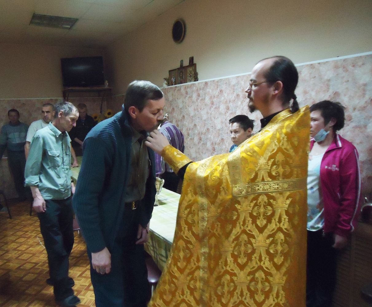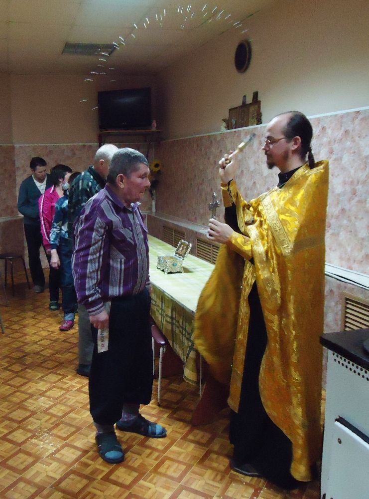 Священнослужители совершили молебен, окропили всех святой водой, поздравили подопечных с праздником и для укрепления в вере и надежде на лучшее будущее отцом Алексием были сказаны слова утешения. Всем присутствующим были вручены сладкие подарки.