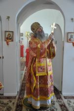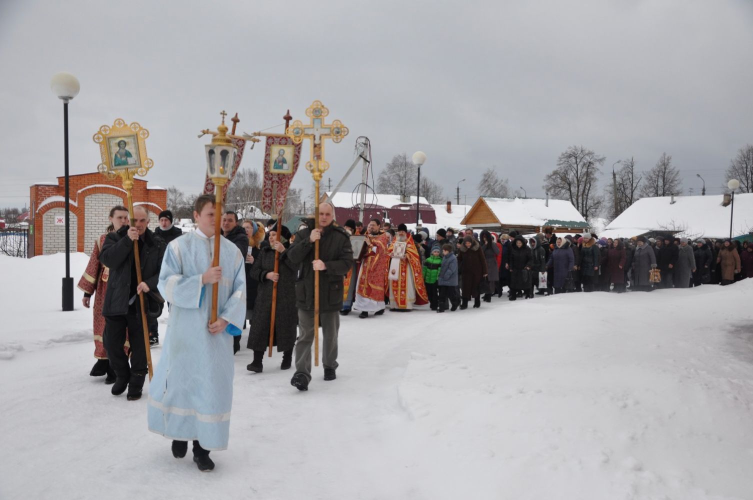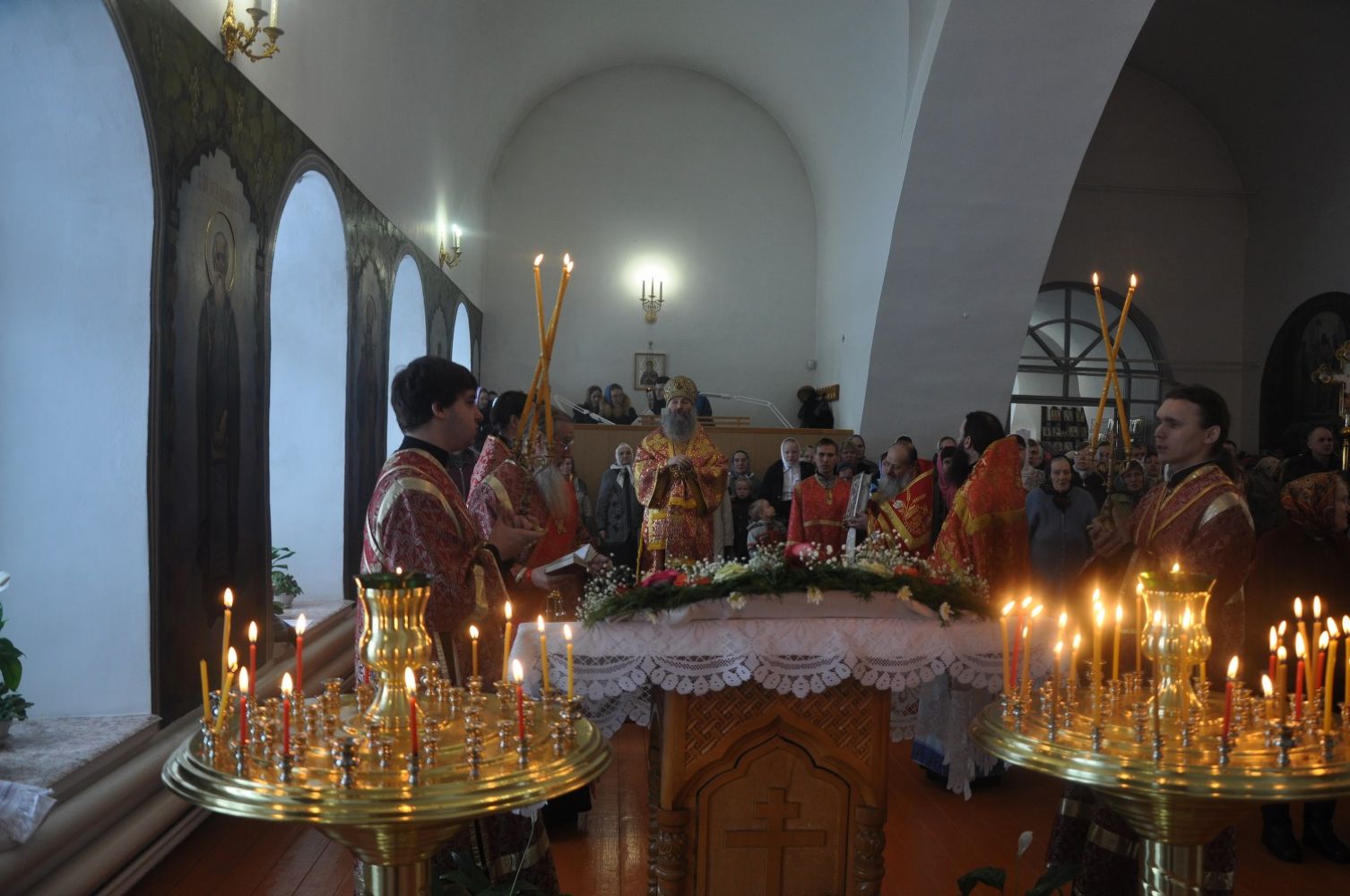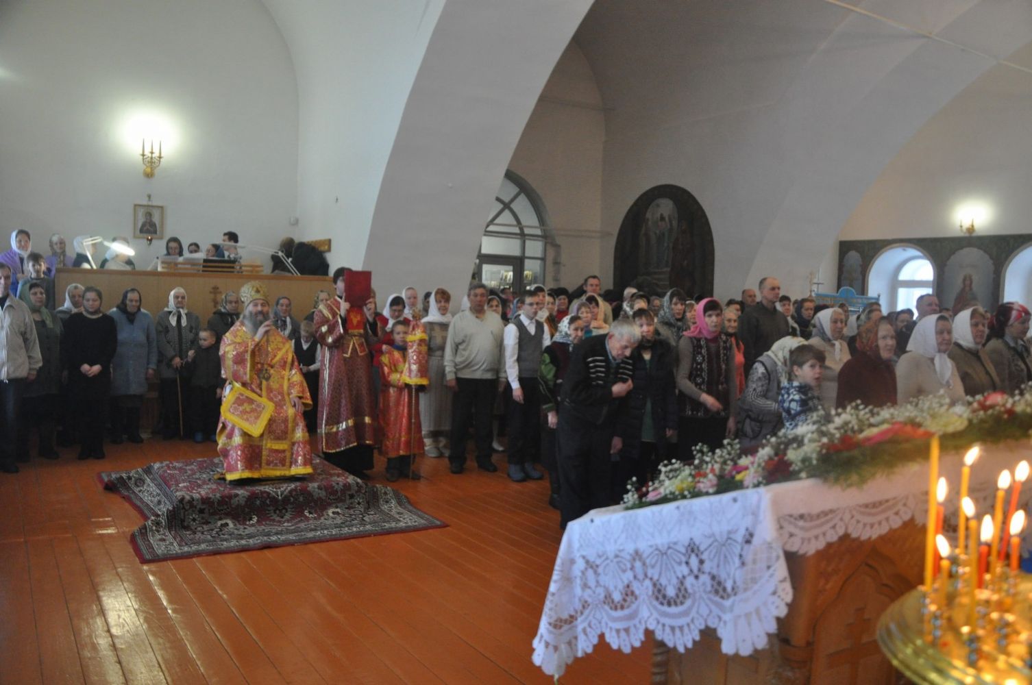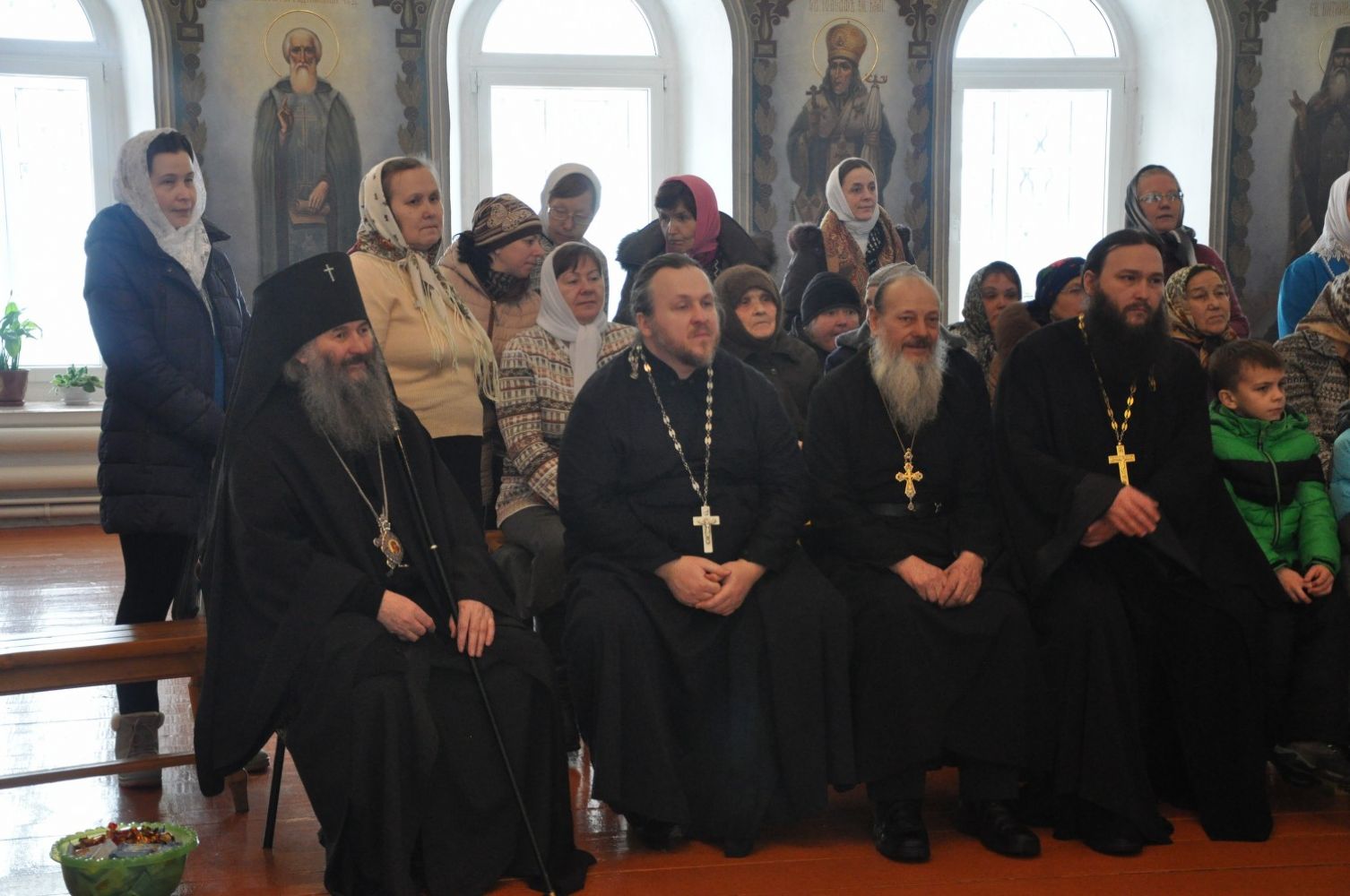 Владыке сослужили: настоятель храма иерей Димитрий Вылекжанин, настоятель храма Покрова Пресвятой Богородицы с. Упша протоиерей Михаил Нехорошков, настоятель храма иконы Божией Матери «Державная» п. Медведево протоиерей Алексий Михайлов и настоятель храма Сретения Господня иерей Алексий Вязов.