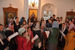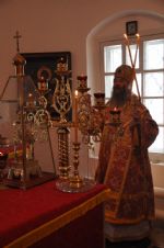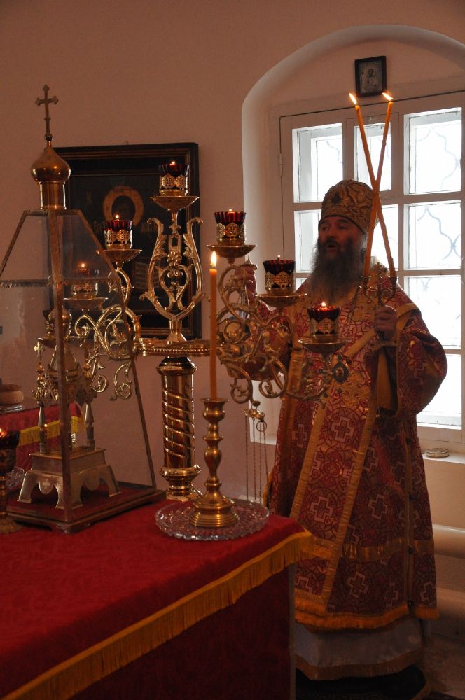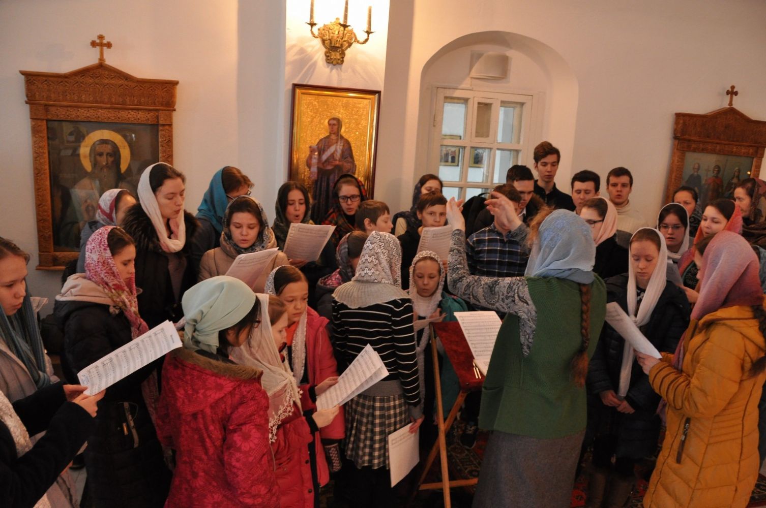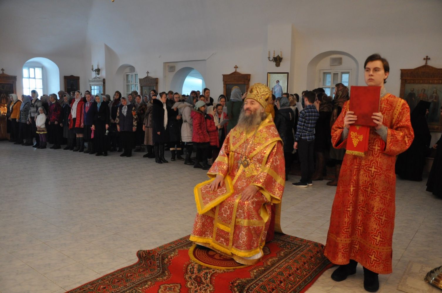 Владыке сослужил клирик монастыря иерей Михаил Лежнин. Богослужебные песнопения исполнял детско-юношеский хор «Благовест» под управлением регента Татианы Черновой. По окончании литургии был совершен молебен.