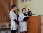 В рамках Чтений были выслушаны выступления студентов Медколледжа, которые рассказали о первопечатнике Иване Федорове, об истории книжного дела на Руси и первой печатной книге – Апостол. Собравшимся был продемонстрирован видеоролик, повествующий в доступной форме о Библии, Ее авторе, времени написания и делении на части.