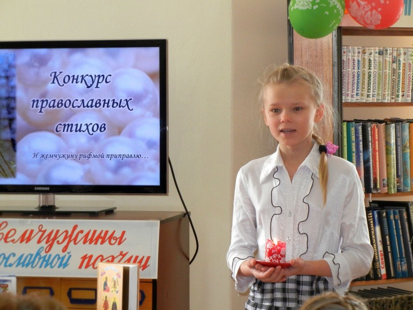 Завершилась Неделя конкурсом чтецов «Жемчужины православной поэзии». Не случайно конкурс получил такое название, ведь в христианстве жемчужина олицетворяет учение Христа, а в древнерусской поэзии слово «жемчужный» означало драгоценный, то есть выше всяких похвал. В конкурсе приняли участие ученики школ райцентра и медведевского района. Прозвучали стихи о Творце, о Божией Матери, назидательные стихи о добродетелях и пороках. И дети, и взрослые завороженно внимали всем конкурсантам. Но особенно запомнились выступления ребят, которые наполнили слова поэтов своим внутренним отношением к Богу, которые сумели не только выучить стихи, но и раскрыть свою чистую душу в поэтических строках. Они и стали победителями конкурса: среди старших школьников 1-е место заняла Севостьян Екатерина, 8 класс МСШ-3, 2-е место – Рыбакова Анна, 8 класс Нурминской школы, 3-е место – Воликов Денис, 7 класс МСШ-3. Среди среднего и младшего возраста 1-е место поделили Бобыкин Дмитрий, 5 класс МСШ-3 и Ефремова Татьяна, 5 класс Русско-Кукморской средней школы, 2-е место – Суркова Лина, 5 класс МСШ-2 и Эрсикова Екатерина, 5 класс Русско-Кукморской школы, 3-е место досталось Давыдову Даниилу, 4 класс Кузнецовской школы.