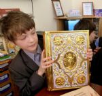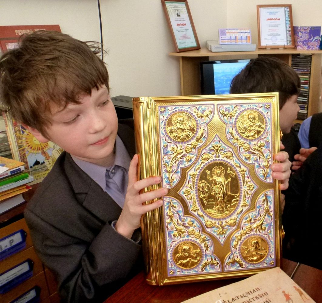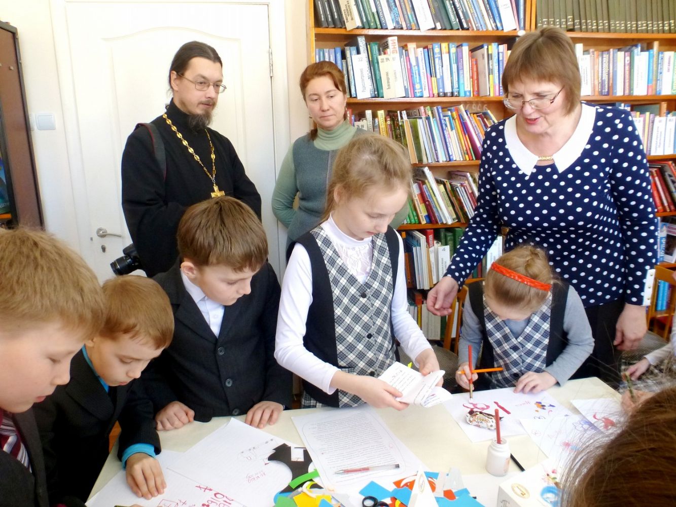 На открытии праздника настоятель медведевского храма иконы Божией Матери «Державная» протоиерей Алексий Михайлов рассказал о ценности печатной книги, о радости, которую испытываешь, когда держишь в руках настоящую, добрую и высокую книгу, обращение к которой воспитывает в читателях милосердие, братскую любовь и веру. После рассказа библиотекарей об истории появления первой печатной книги на Руси ребята имели возможность поработать гусиными и стальными перьями, ненадолго поставив себя на место древнерусских книжников.