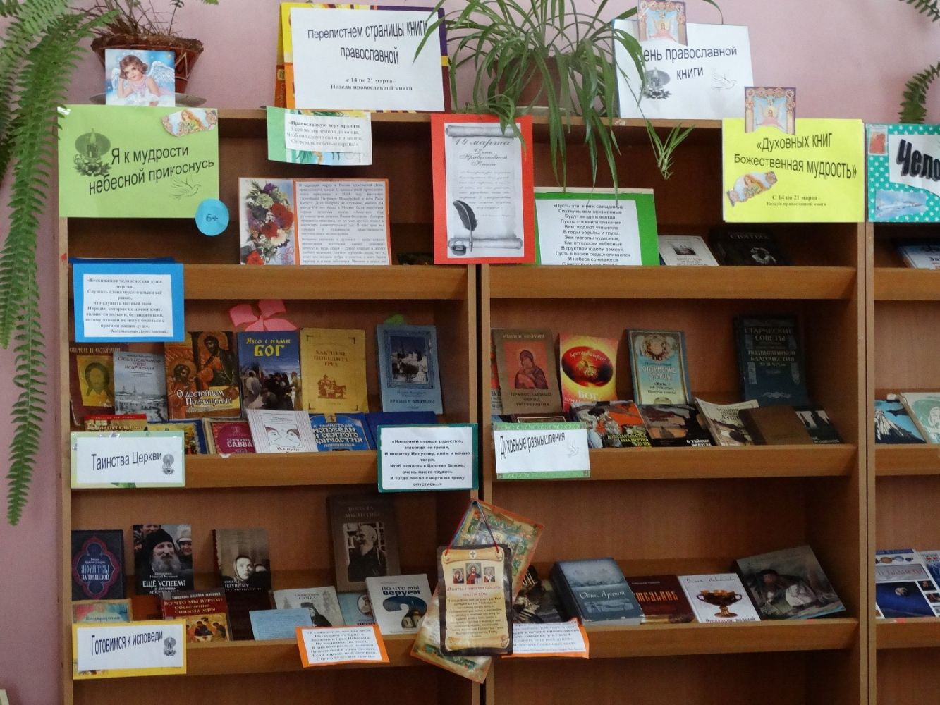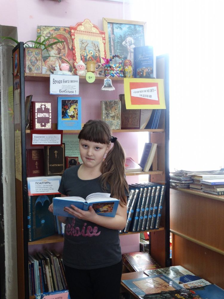 А 22 марта в Чкаринской библиотеке прошло Закрытие Недели православной книги. Школьники побывали на библиотечном кино-салоне «Вечная книга жизни». Учащиеся 1-4 классов ознакомились с книжной выставкой «Зернышки духовной литературы», а также с главными православными книгами. В конце мероприятия они просмотрели детский фильм про Сотворение Мира.