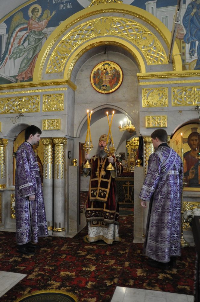 Вечером того же дня, Владыка совершил вечерню с чином Пассии в Успенском храме г. Йошкар-Олы. Владыке сослужили клирики храма: иерей Алексий Михеев и иерей Алексий Семенов. За богослужением пел хор Успенского храма под управлением регента Ксении Стениной.