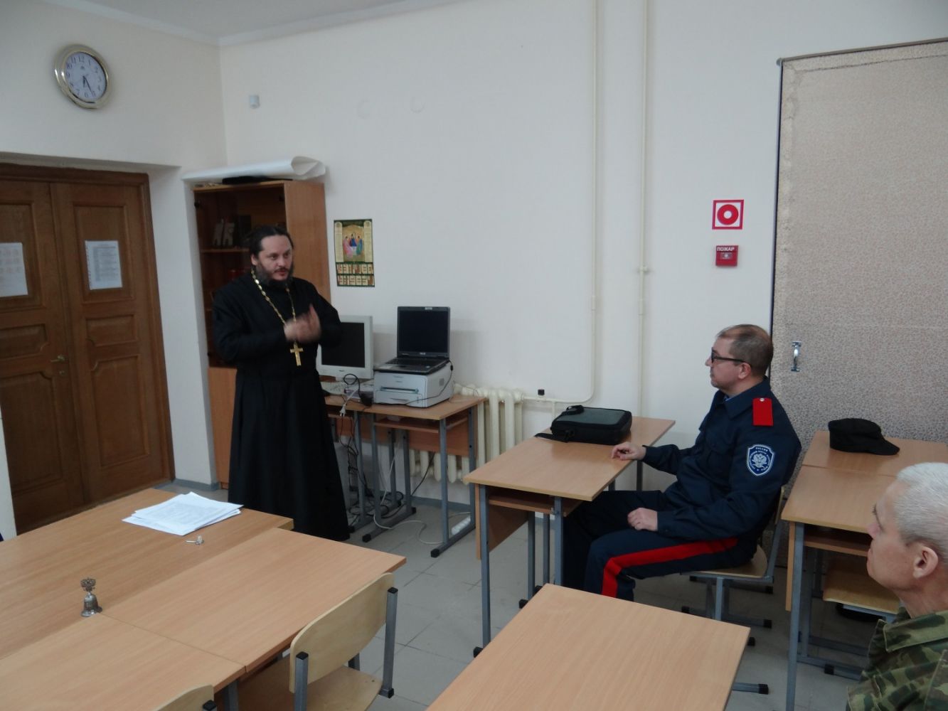 11 апреля на первом, вводном занятии священник Алексей Леонов, руководитель епархиального отдела по взаимодействию с казачеством и руководитель православного Общества трезвости Йошкар-Олинской епархии Александр Кардаков вместе со слушателями вспоминали об исторических корнях православного казачества на территории Марийского края со времен Иоанна Грозного до революции 1917 года.