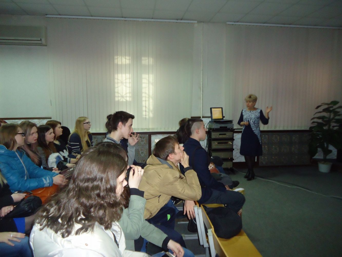 Ее участниками в этот день стали учащиеся Марийского радиомеханического техникума. На этот раз была аудитория небольшой – в кабинете собралось около 30 человек. Мероприятие началось с официального представления рабочей группы акции заведующей по воспитательной работе Надеждой Михайловной Лаптевой.