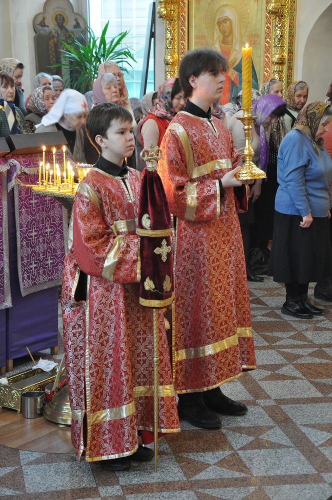 17 апреля, в Неделю 5-ю Великого поста, преподобной Марии Египетской, Его Высокопреосвященство архиепископ Йошкар-Олинский и Марийский Иоанн совершил Божественную литургию святителя Василия Великого и вечерню с чином Пассии в храме преподобного Серафима Саровского г. Йошкар-Олы.