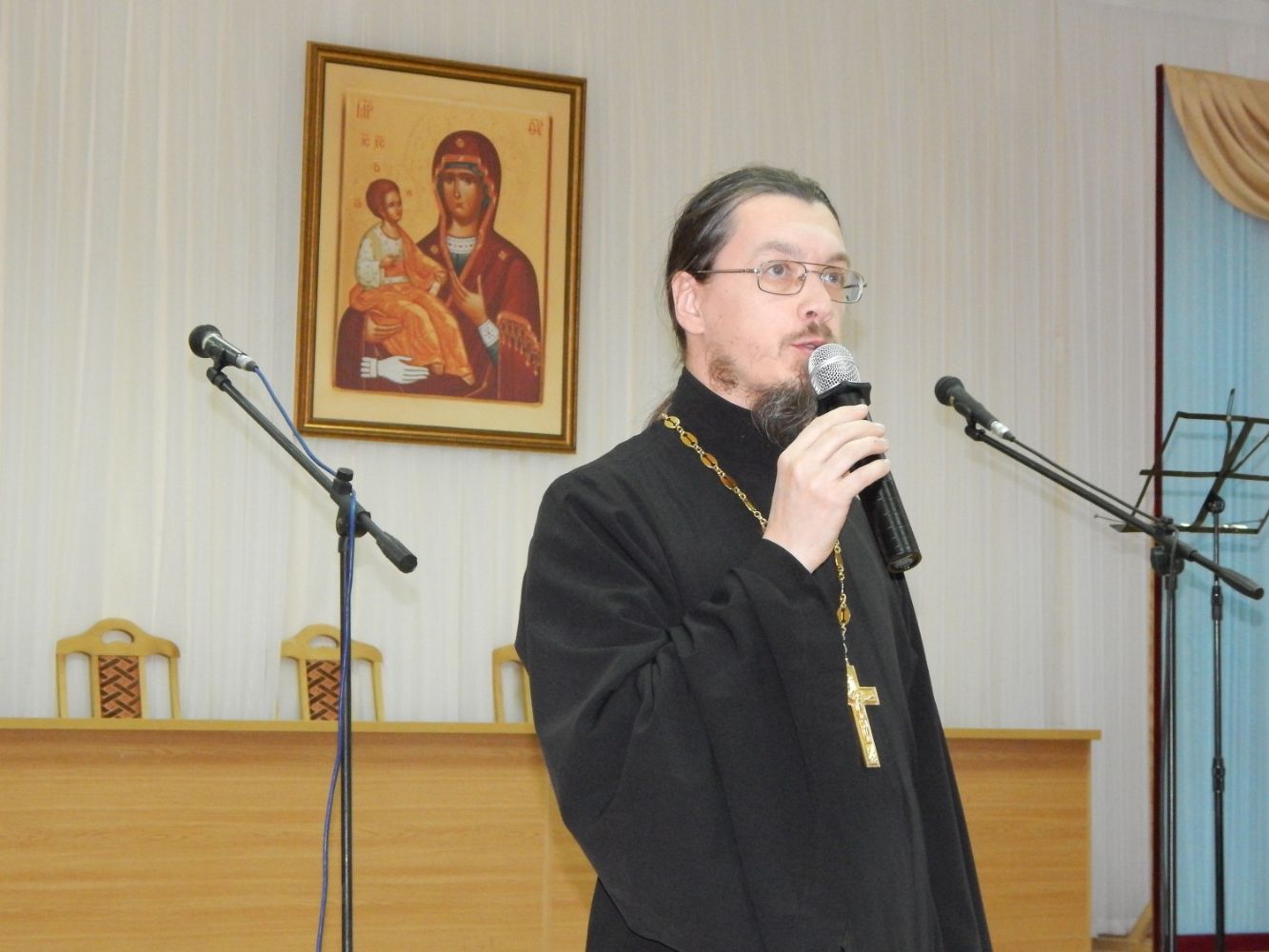 Вечер вел сотрудник миссионерского отдела Григорий Михеев. С теплыми приветственными словами обратился к собравшимся протоиерей Алексий Михайлов, руководитель миссионерского отдела Йошкар-Олинской и Марийской епархии. Затем вниманию зрителей был представлен документальный фильм 1987 года о ликвидаторах аварии на Чернобыльской АЭС. Перед гостями выступил детско-юношеский хор «Благовест», хор храма святой мученицы Татианы при ПГТУ и марийская государственная капелла имени Алексея Искандарова – солистка Эльвира Гурьева.