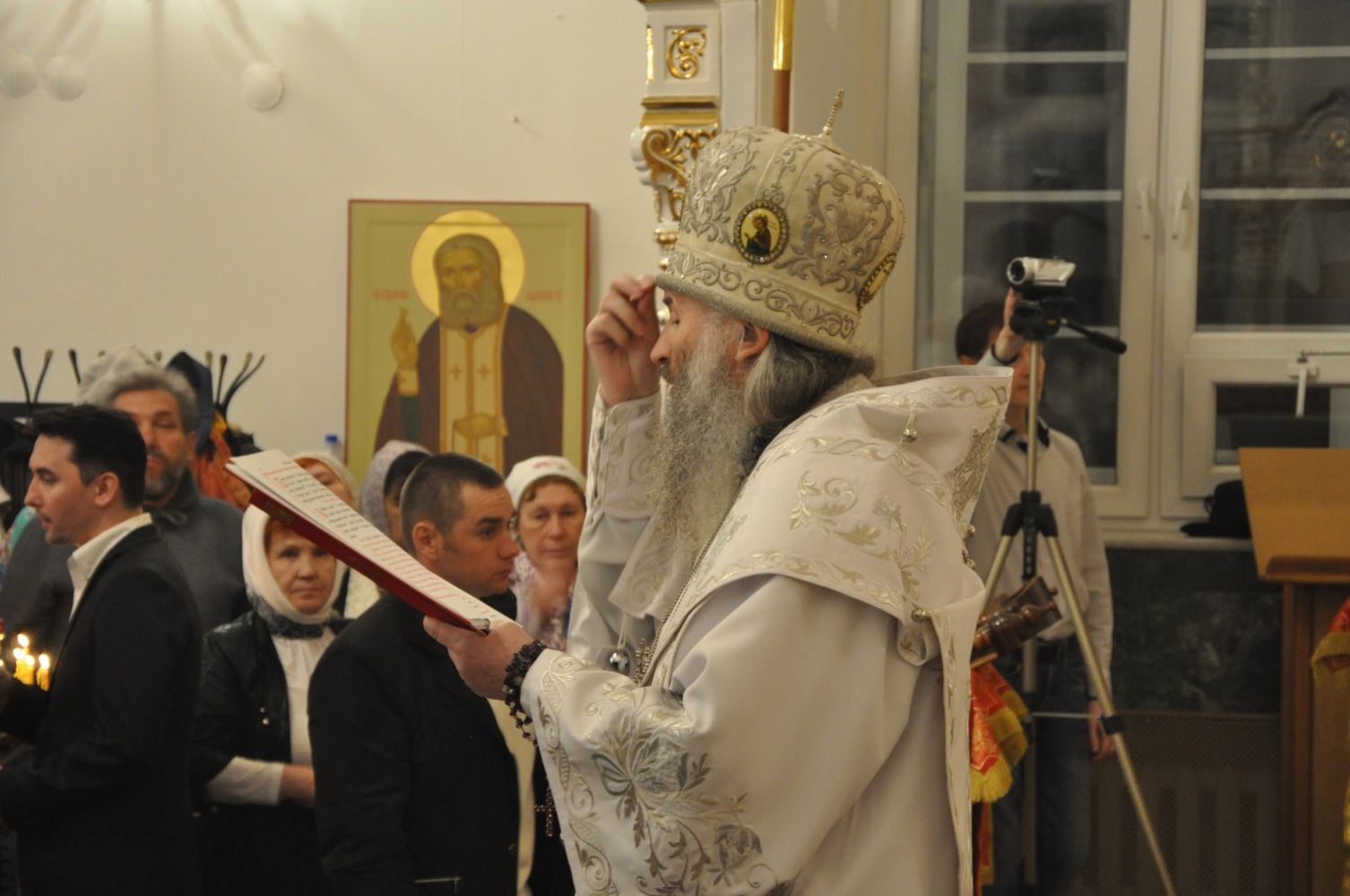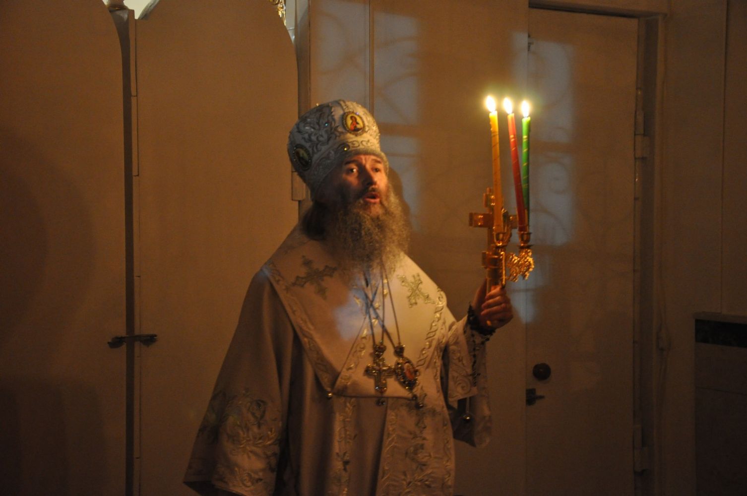 По традиции за Пасхальной заутреней Владыка прочитал Слово огласительное святителя Иоанна Златоуста на Святую Пасху.