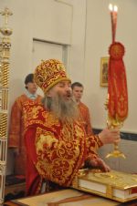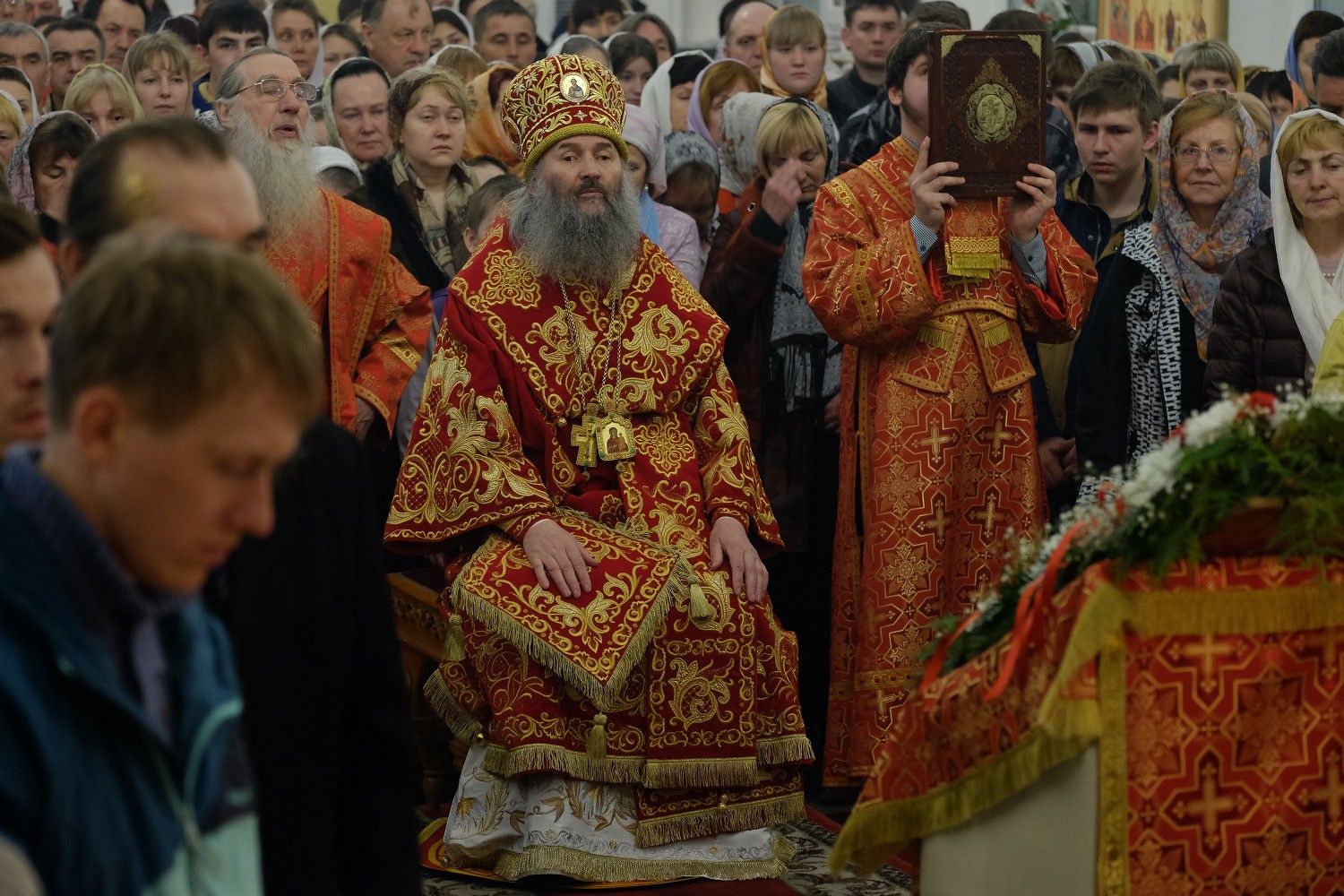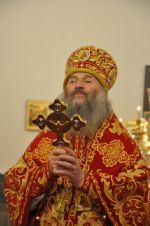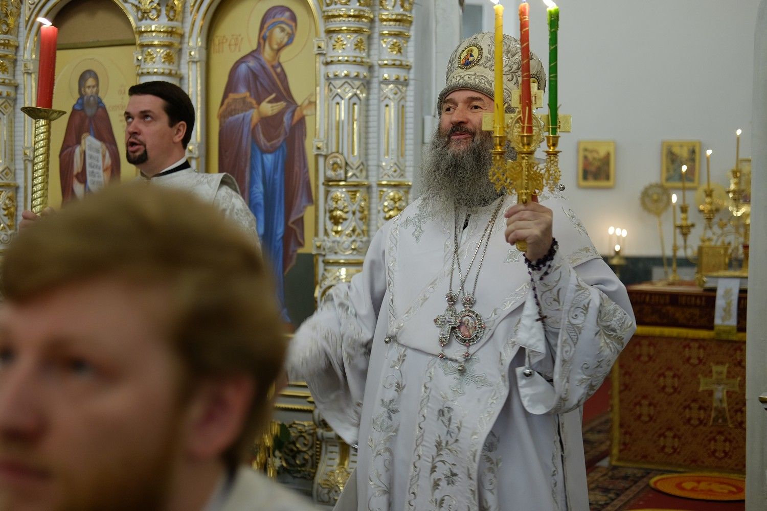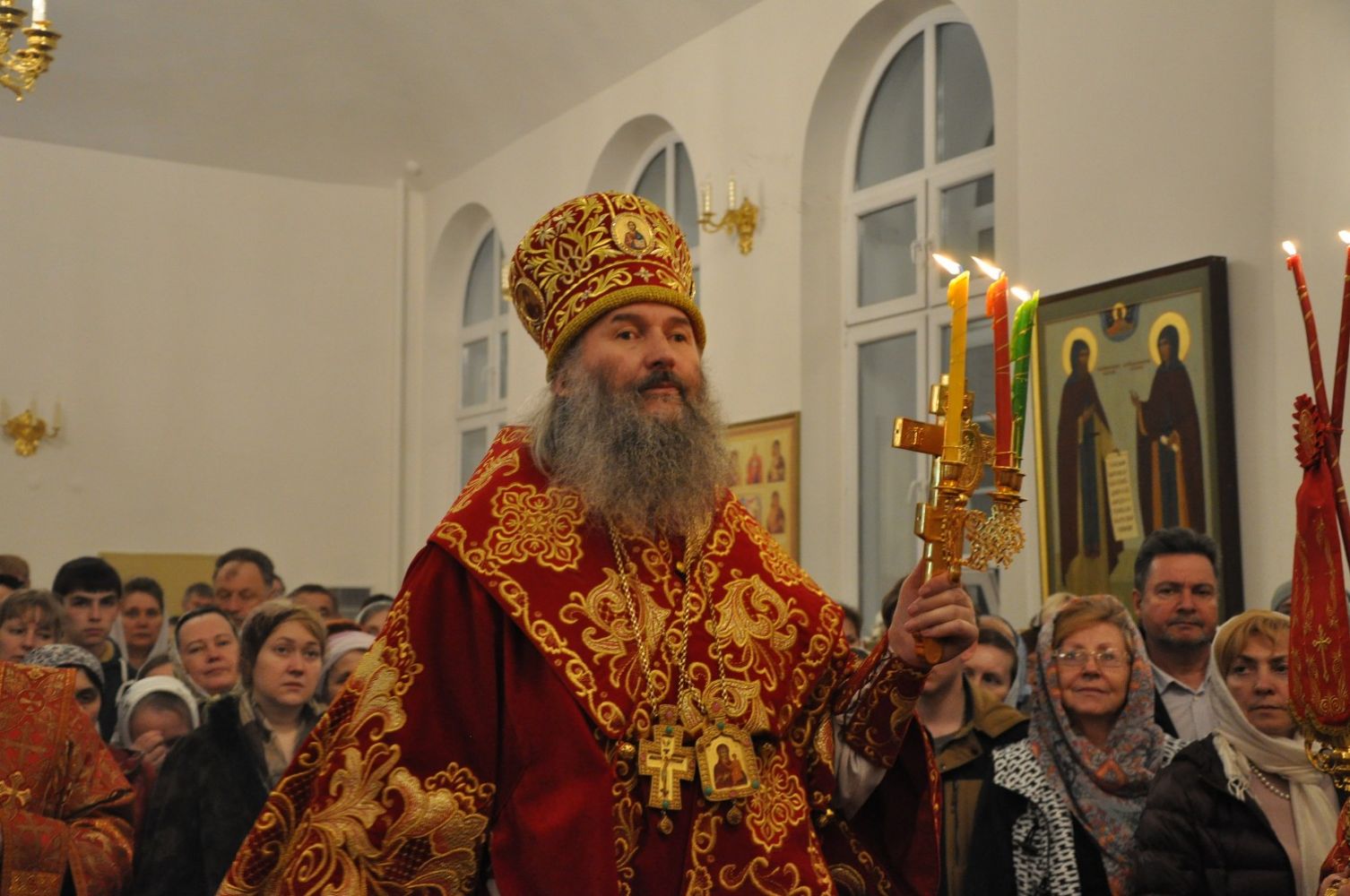 Владыке сослужили: секретарь Епархиального управления иеромонах Серафим (Пасанаев), настоятель храма протоиерей Сергий Поглазов и клирик храма иерей Андрей Кочаков.