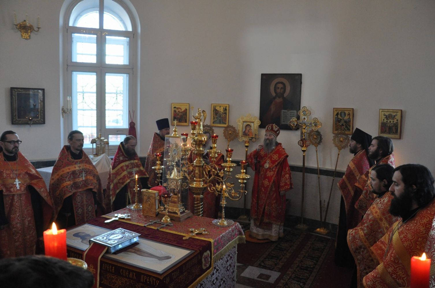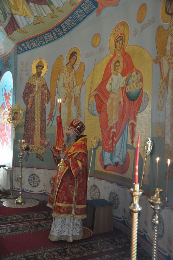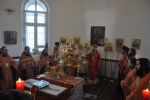 Владыке сослужили: секретарь Епархиального управления иеромонах Серафим (Пасанаев), настоятель храма протоиерей Сергий Поглазов и клирики храма: иерей Алексий Кирюшкин и иерей Никифор Захаров.