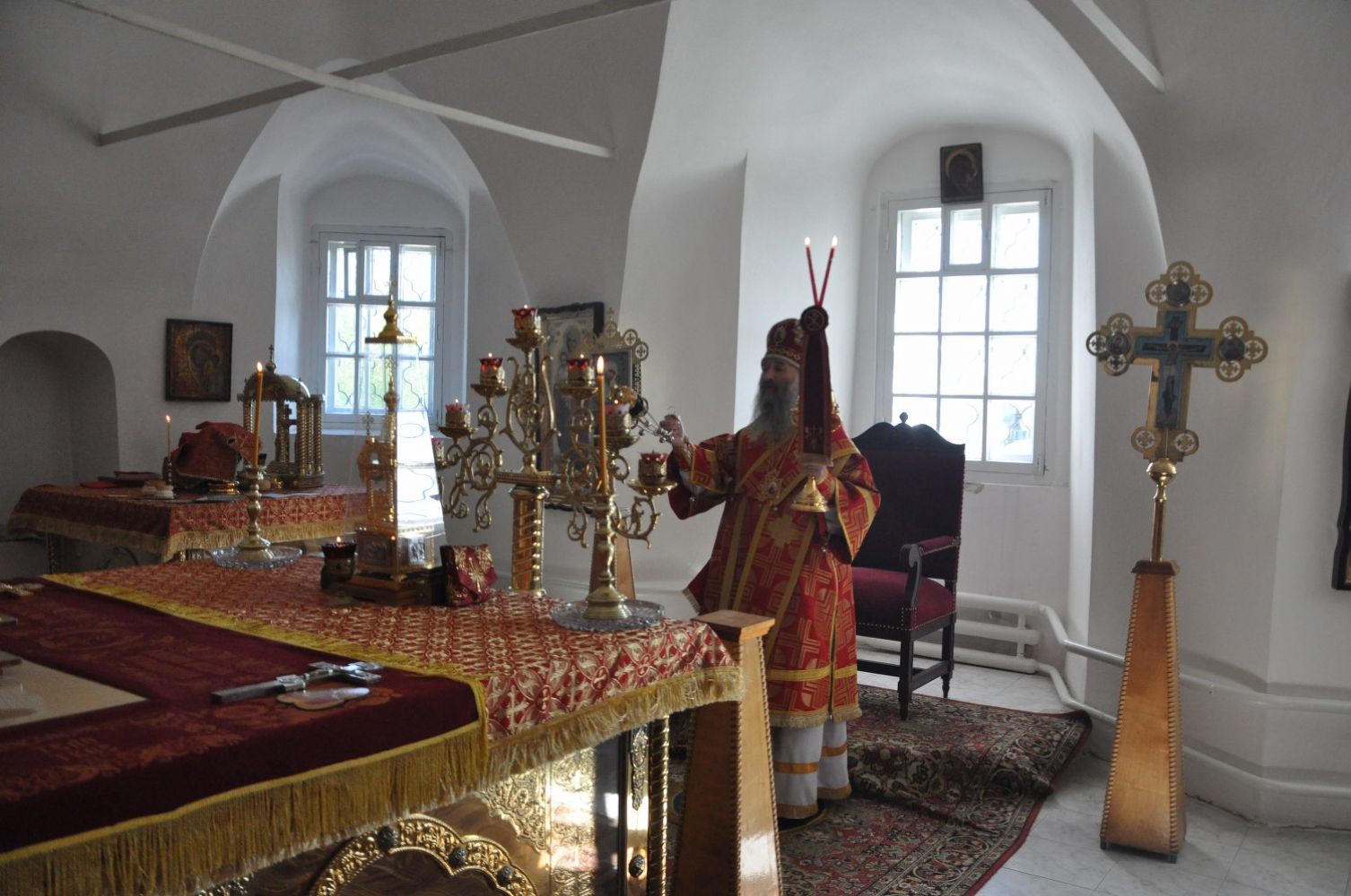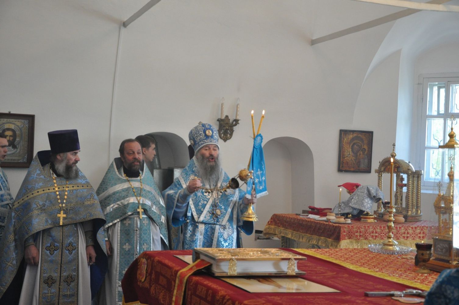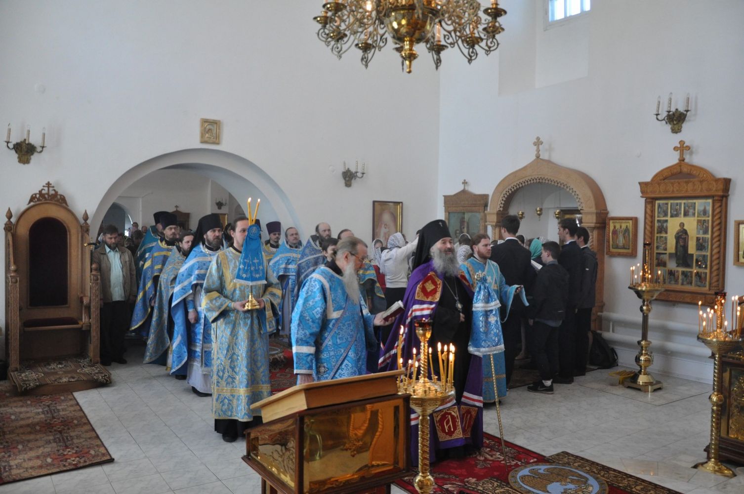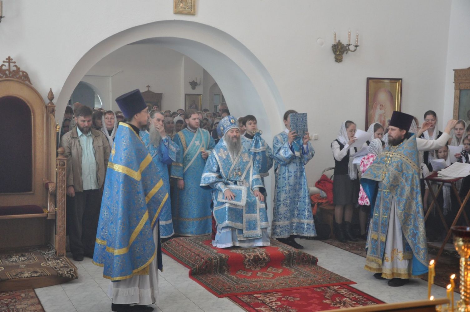 Его Высокопреосвященству сослужили клирики епархии. Богослужебные песнопения исполнил детско-юношеский хор «Благовест» под управлением регента Татьяны Черновой.