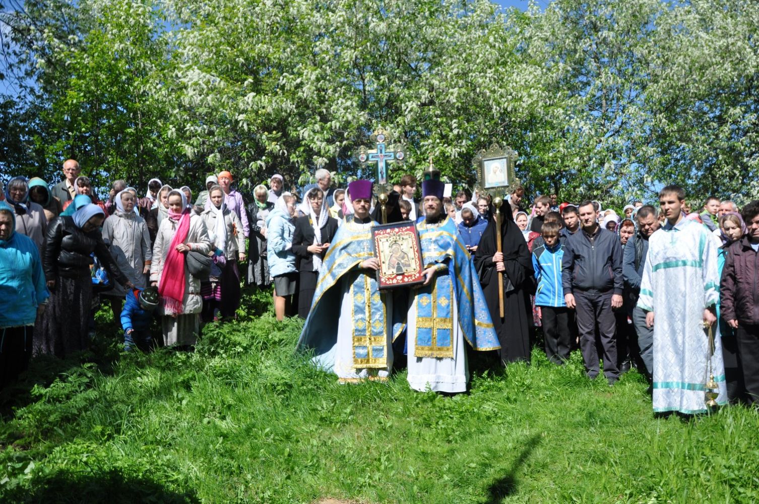 На праздничных богослужениях присутствовали многочисленные паломники не только из нашей республики, но и с соседних епархий. По окончании Литургии были совершены крестные ходы на источник.