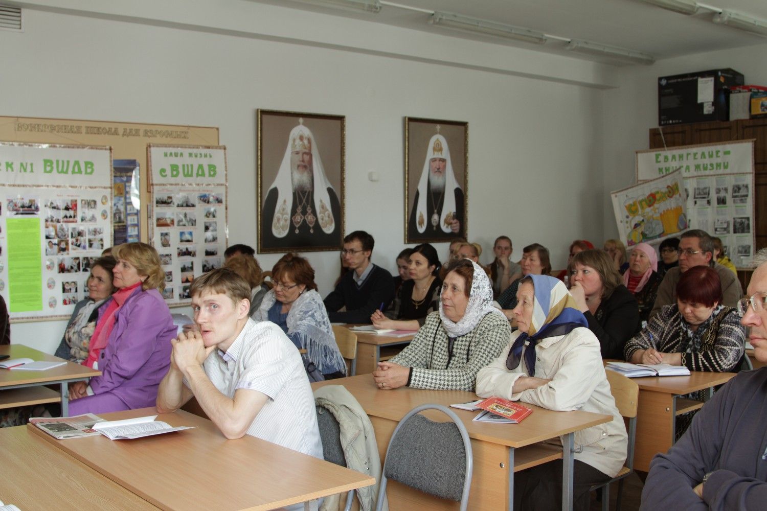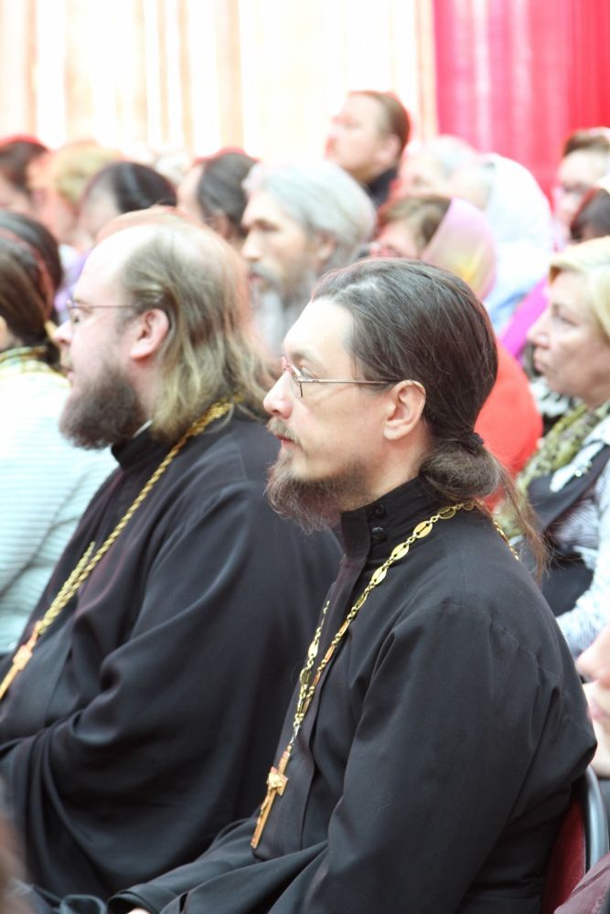 Проходила работа круглых столов. Так, протоиерей Николай Ярошевич провел заседание на тему «Современное церковно-приходское образование: перспективы и трудности», протоиерей Евгений Сурков — «Школа, семья и Церковь: формы и методы соработничества».