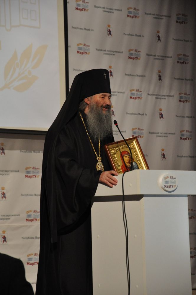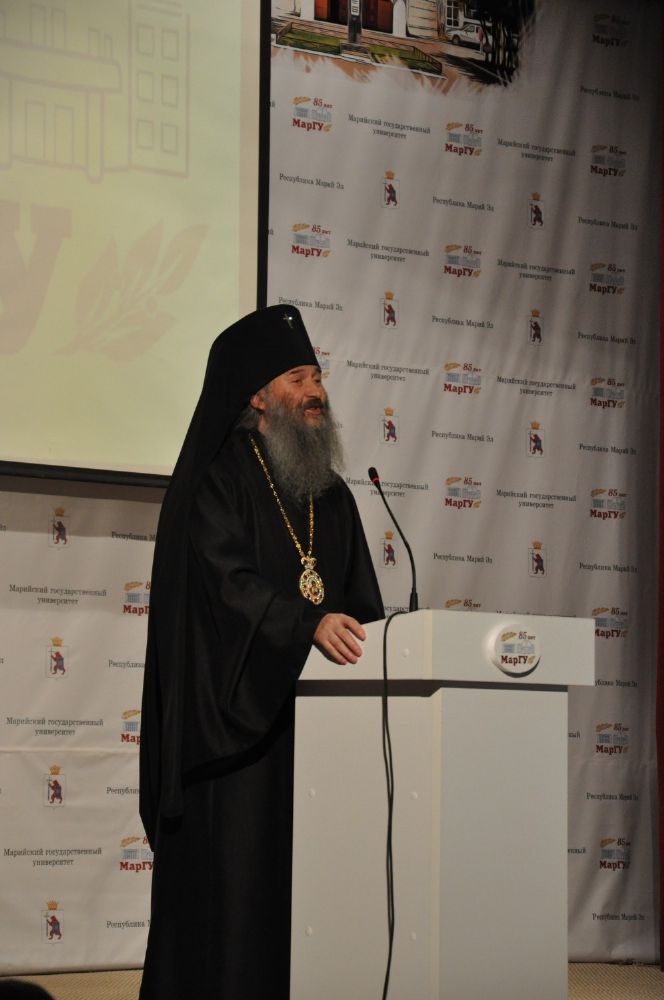 В праздничном заседании принял участие архиепископ Йошкар-Олинский и Марийский Иоанн. Он отметил, что не случайно день образования Марийского государственного университета и системы высшего образования Республики Марий Эл совпадает с днями, когда празднуется память просветителей и учителей Словенских и создателей азбуки Кирилла и Мефодия. Владыка пожелал и преподавателям и студентам не забывать об этом и сохранять и преумножать славное наследие великих славянских учителей святых равноапостольных Кирилла и Мефодия.