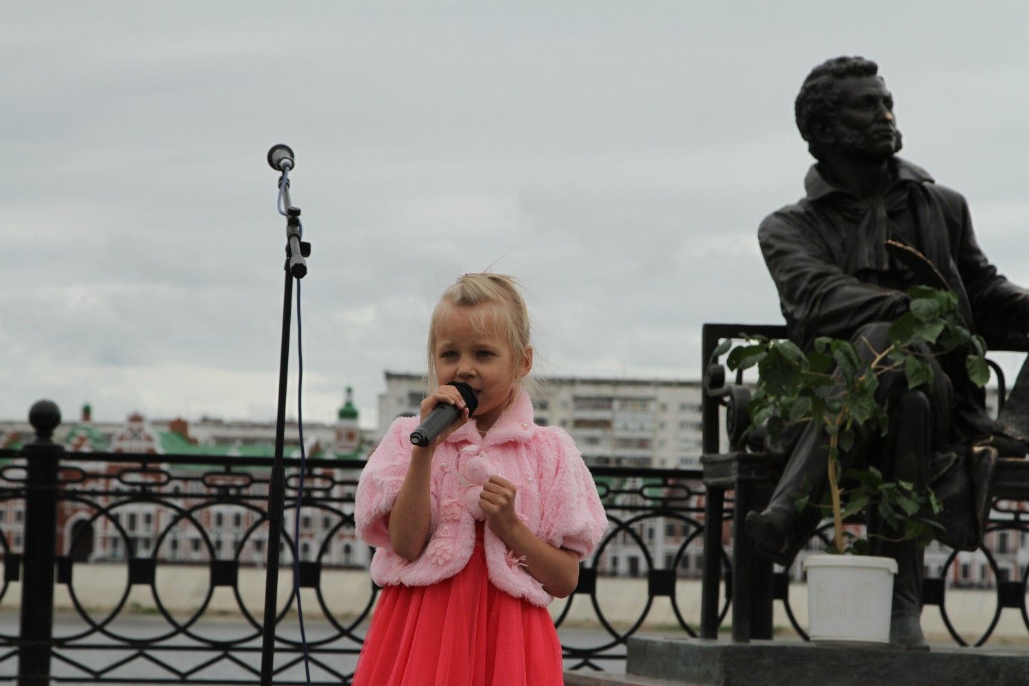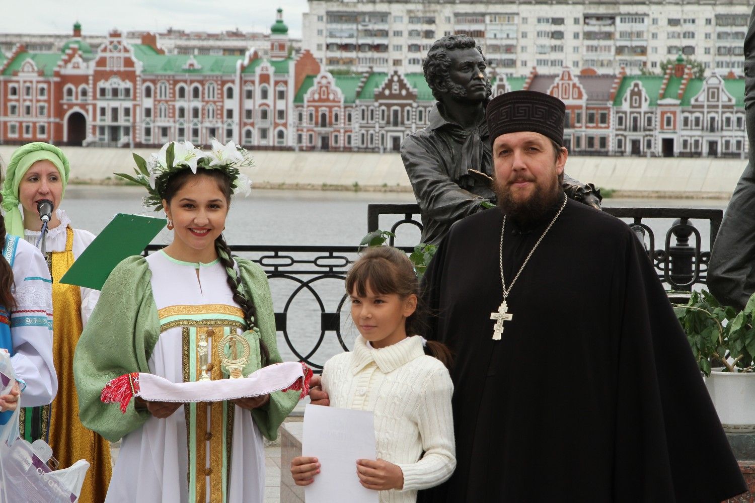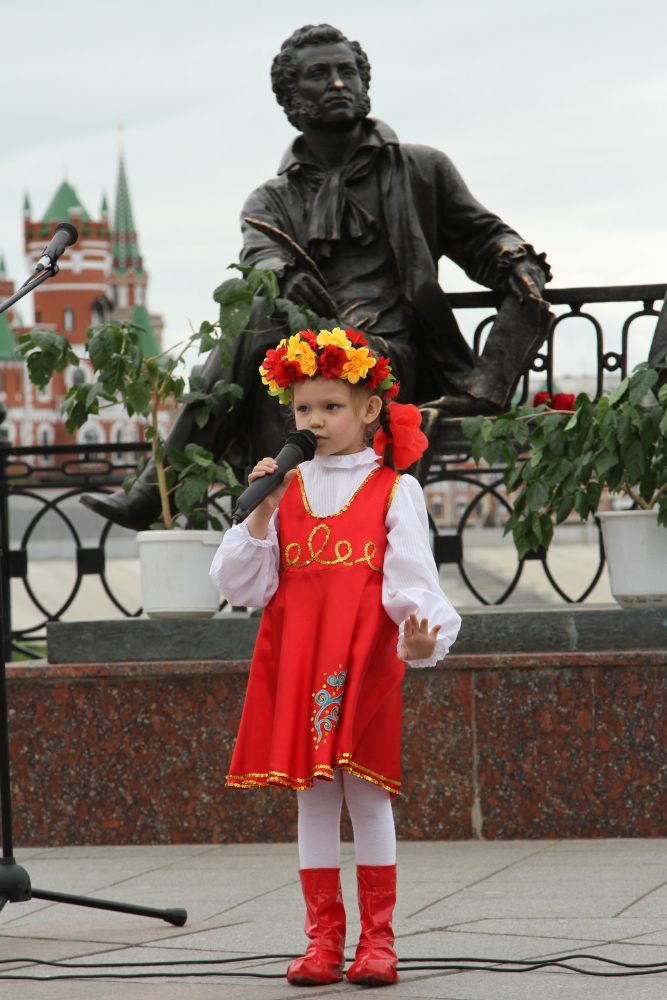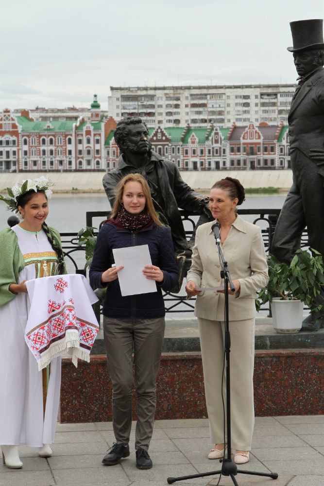 6 июня 2016 года около скульптурной композиции «А. С. Пушкин и Евгений Онегин» на набережной реки Кокшаги прошло мероприятие, посвященное государственному празднику «Дню русского языка». Мероприятие организовано Республиканским центром русской культуры при участии Отдела по делам молодежи Йошкар-Олинской и Марийской епархии.