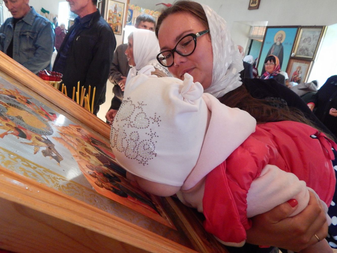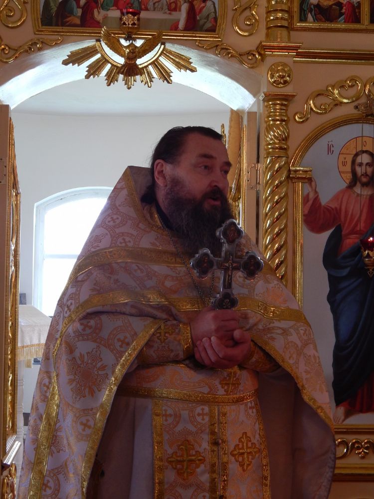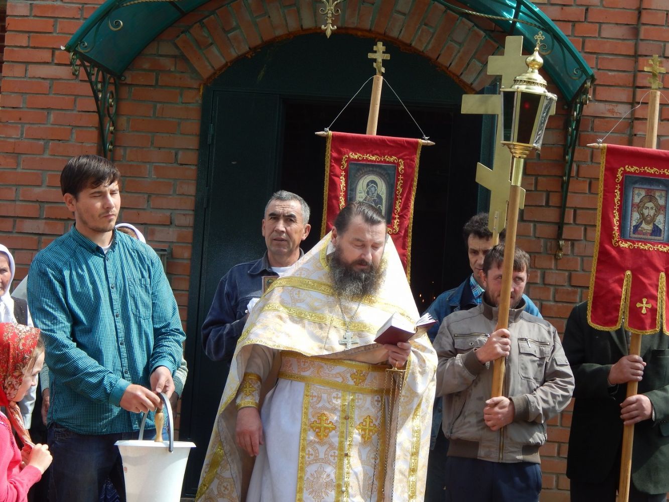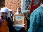 Престольный праздник продолжился крестным ходом вокруг храма. Отец Евгений поздравил всех с престольным праздником, пожелал здоровья и укрепления в вере.