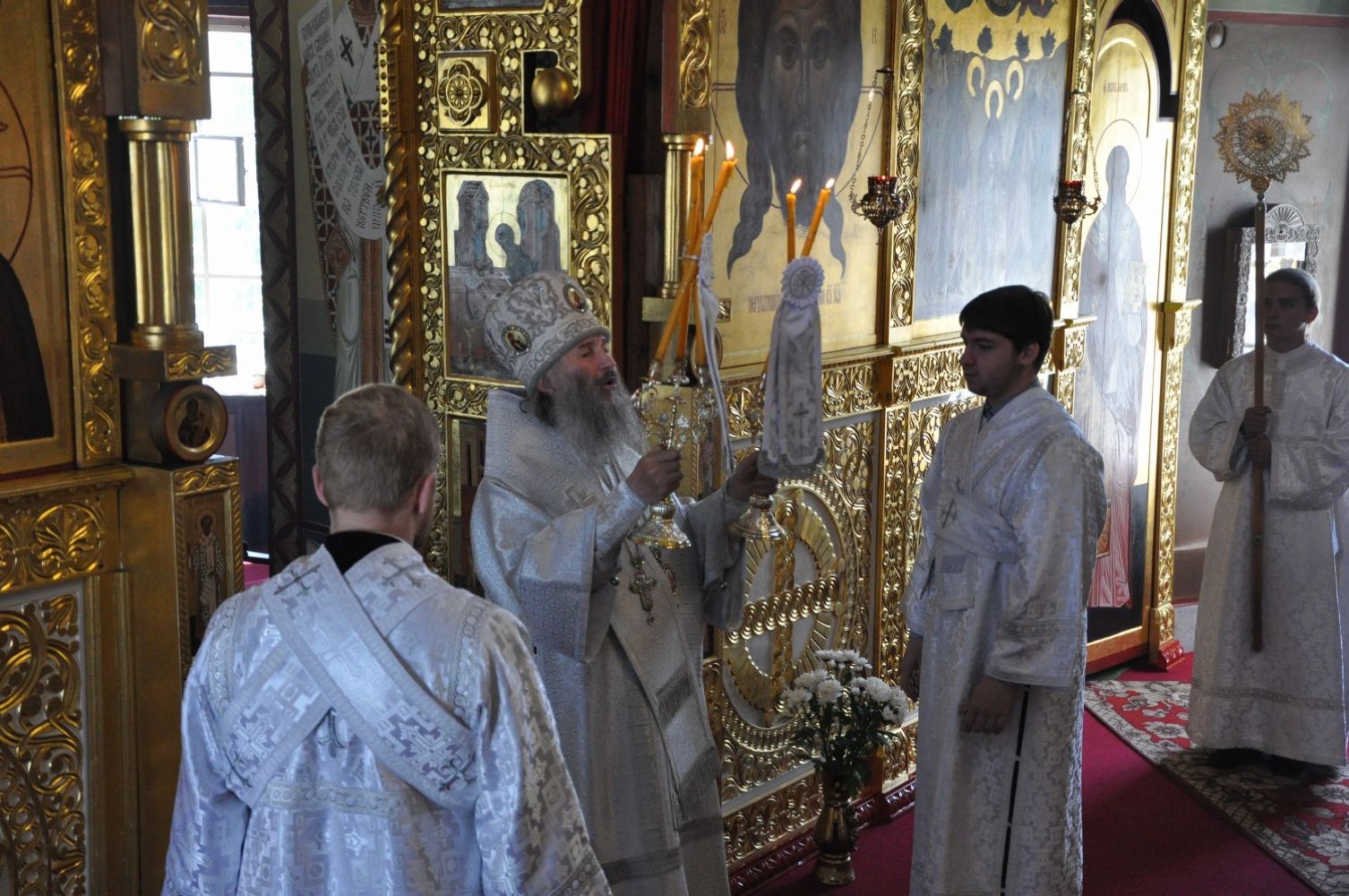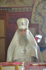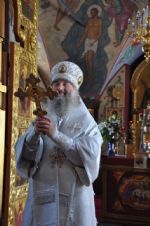 Владыке сослужили: секретарь Епархиального управления иеромонах Серафим (Пасанаев), благочинный Йошкар-Олинского церковного округа, настоятель собора митрофорный протоиерей Евгений Кутырев и клирик собора иерей Владимир Камышев.