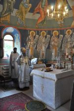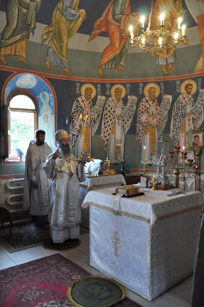 Владыке сослужили: секретарь Епархиального управления иеромонах Серафим (Пасанаев) и клирик храма иерей Павел Дурандин.