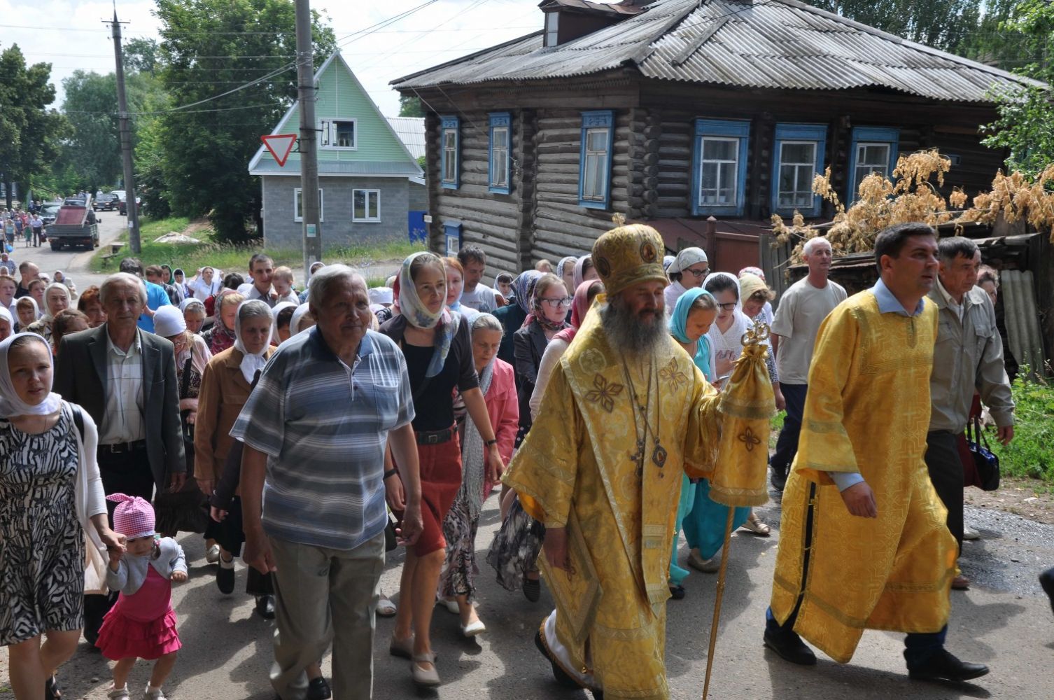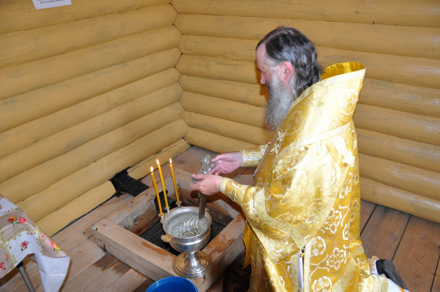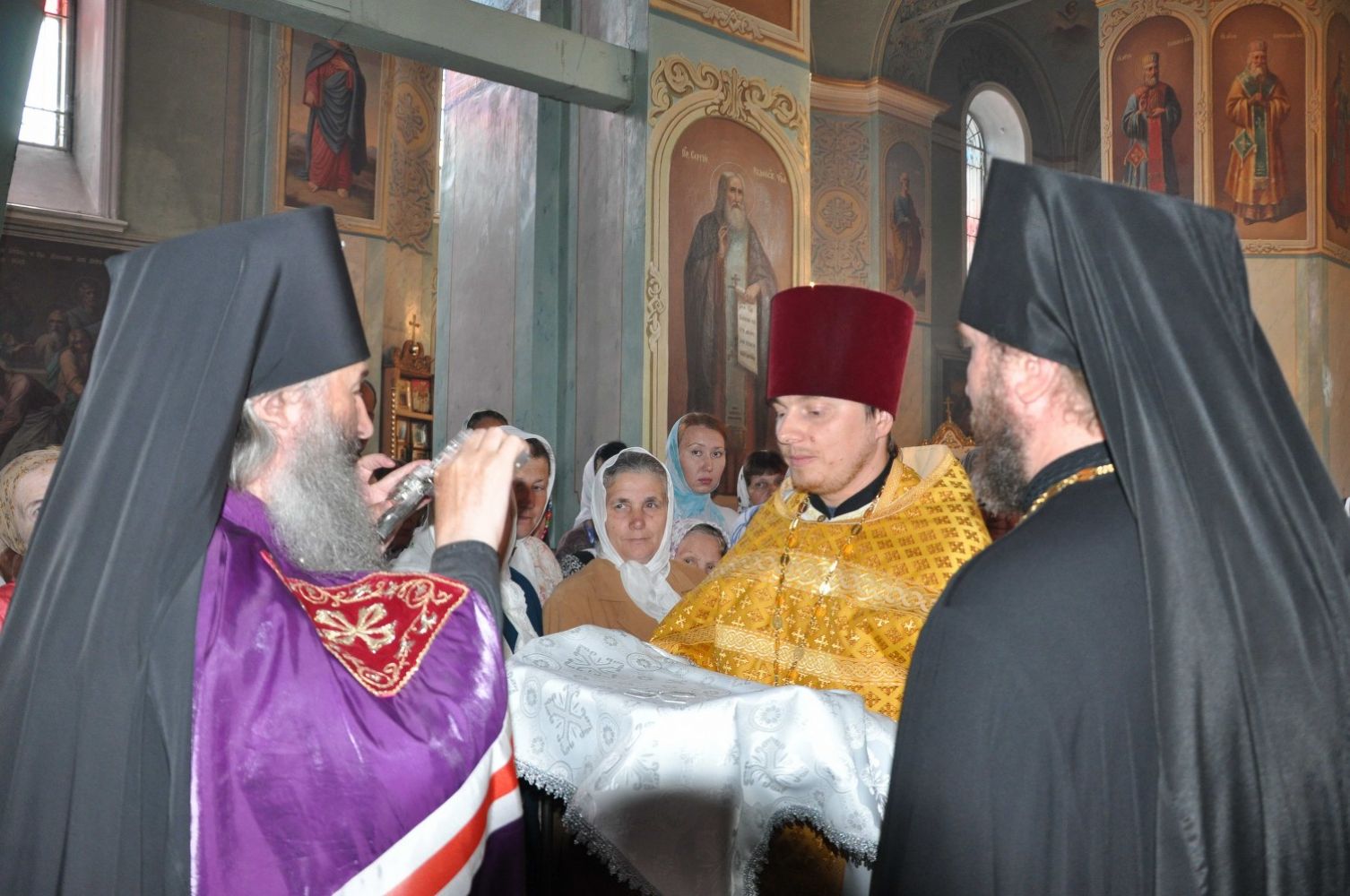 После Литургии архиепископ Иоанн вместе со священниками и народом отправился крестным ходом к часовне, расположенной в 3 километрах от храма на живописном месте на берегу реки Волги. Часовня с купелью была построена на месте источника воды. Владыка совершил водосвятный молебен и освятил источник в честь Смоленской иконы Божией Матери.