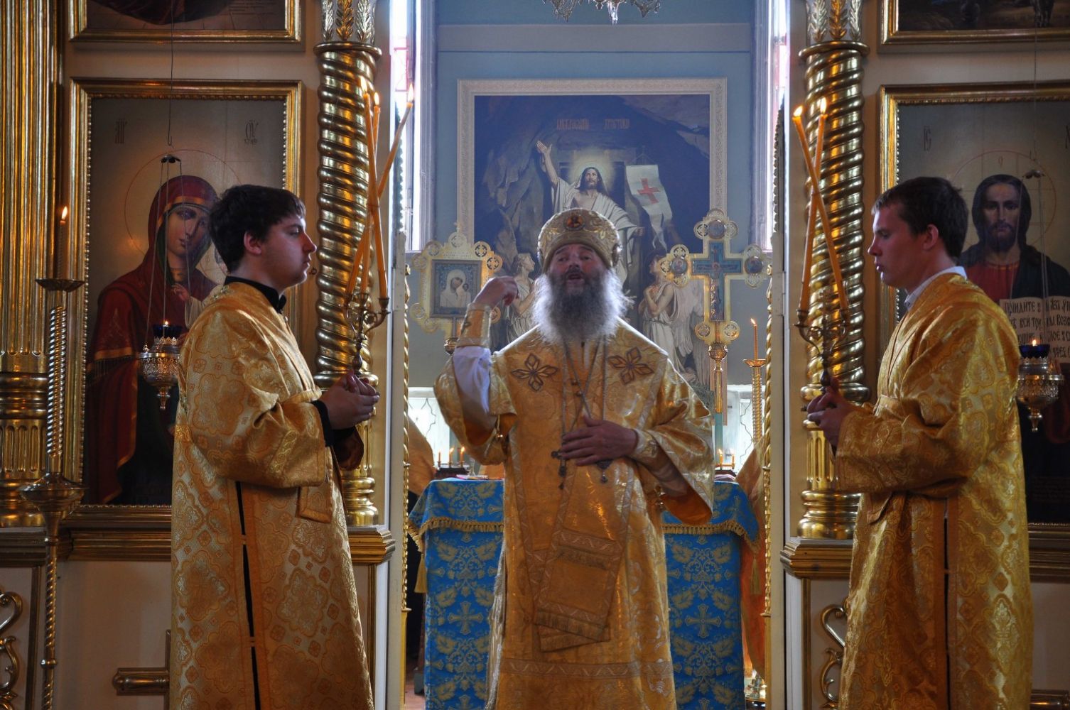 В субботу вечером архиепископ Иоанн возглавил Всенощное бдение в Благовещенском соборе г. Йошкар-Олы. Сослужили Владыке ключарь собора протоиерей Сергий Поглазов, а также клирики собора иерей Никифор Захаров, иерей Евгений Самойлов, иерей Артемий Промович.