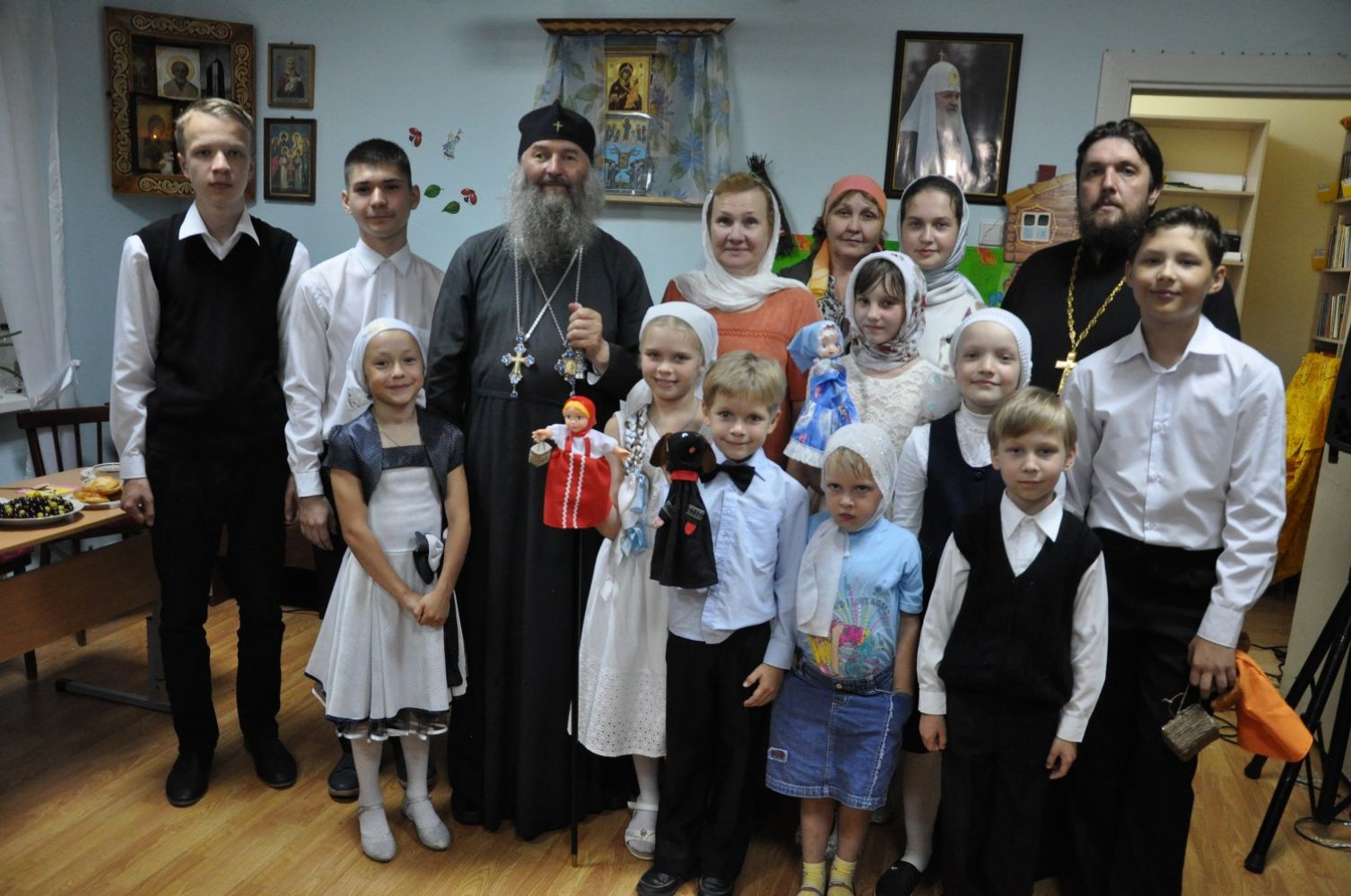 После богослужения перед Владыкой и прихожанами выступили воспитанники воскресной школы Тихвинского храма. В концертной программе прозвучали песнопения и стихи, а также был показан кукольный спектакль.
