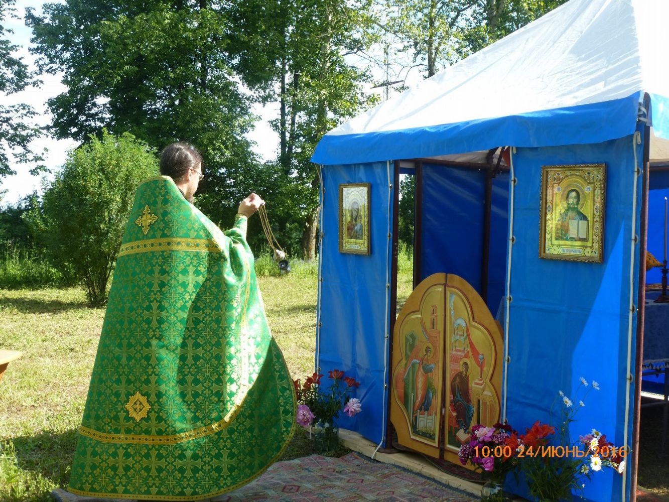 Идя навстречу пожеланиям верующих, благочинный Пригородного церковного округа иерей Александр Коваль организовал богослужение в передвижном храме-палатке, в котором протоиереем Алексеем Михайловым была совершена Божественная литургия. За службой молились около 30 человек, 12 из них причастились Святых Христовы Таин. Некоторые богослужебные песнопения Литургии исполнялись на марийском языке.