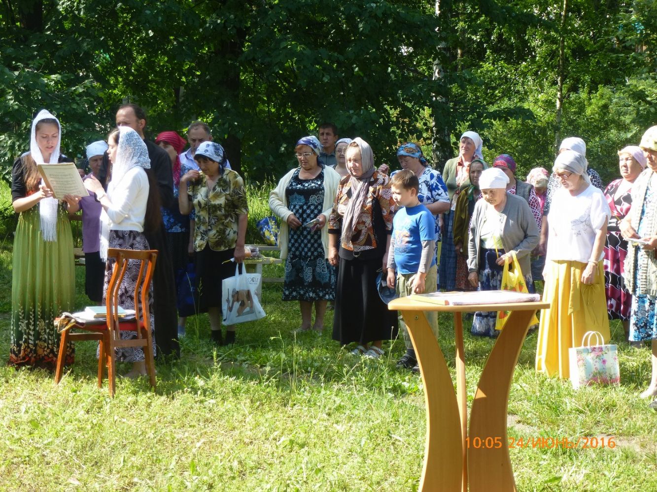 5 июля аналогичное богослужение в храме-палатке было совершено в д. Среднее Азяково, в которой также нет своего храма. В 20-г.г. XX века православный храм был построен в соседнем, через дорогу, селе Шеклянур, однако до настоящего времени не сохранился, т.к. был полностью разрушен в годы советской власти. Богослужение собрало около 20 человек, 10 из них приготовились и причастились Христовых Таин. Среди причастников были и дети.