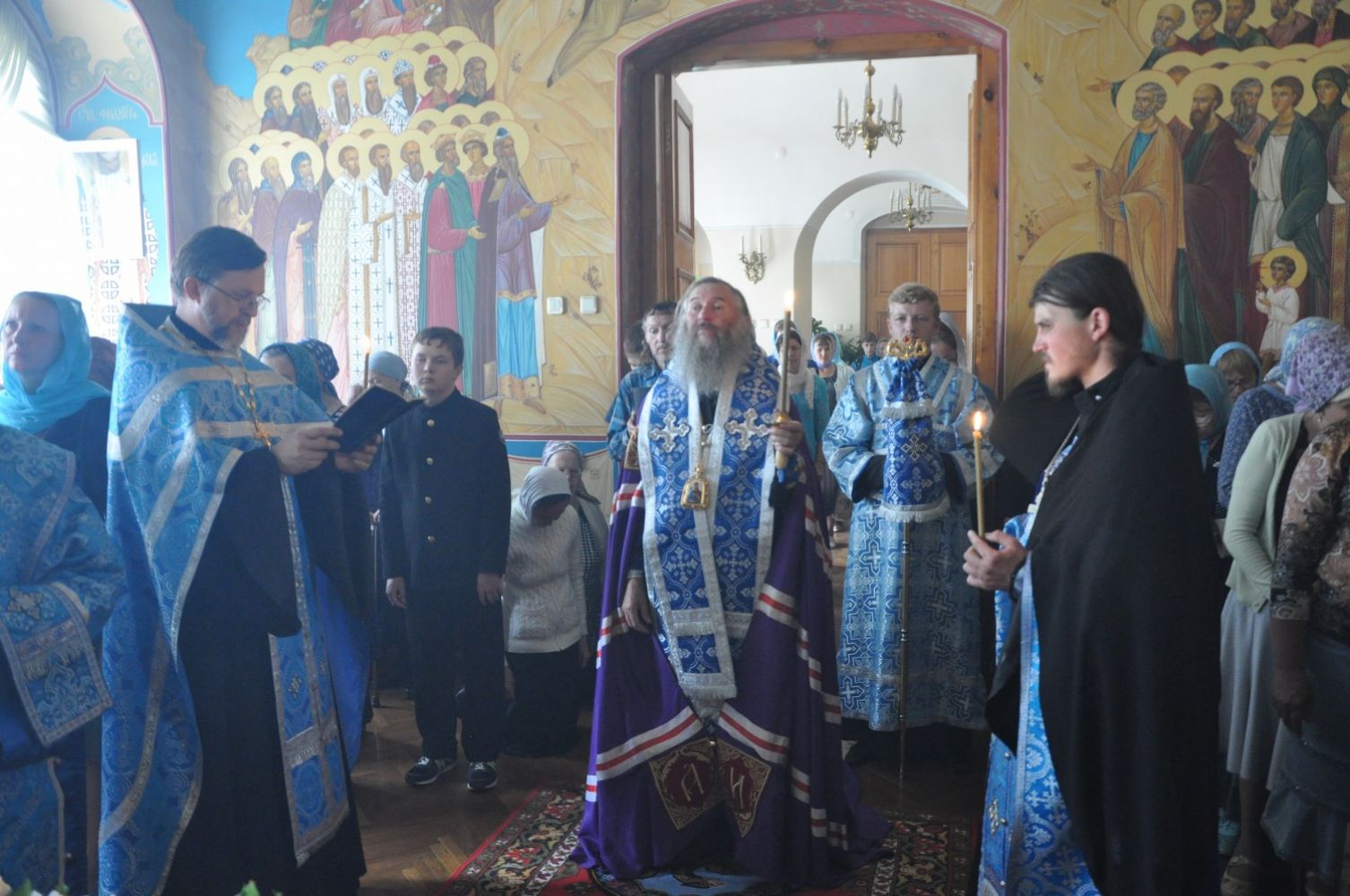 Богослужение началось вечером 10 июля с чтения акафиста Пресвятой Богородице в ее образе «Троеручица». Маленький домовый храм в здании Епархиального управления, освященный в честь празднуемого образа Богородицы, был полон молящихся.
